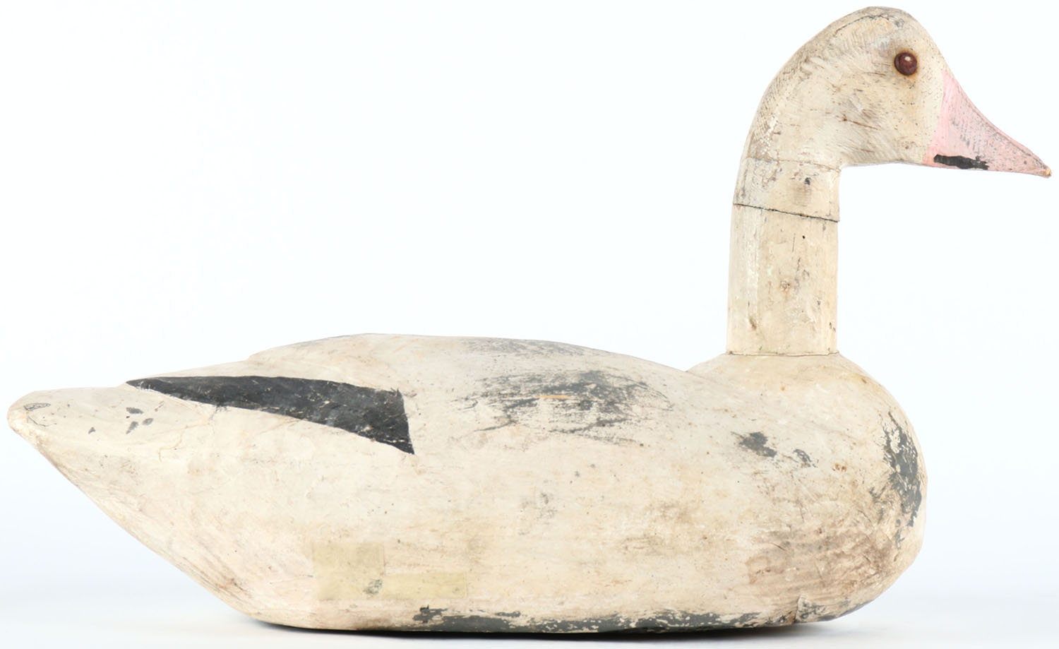 Snow Goose by unknown maker, tack eyes, solid wood, combination of original and old hunter working repaint, structurally excellent. Grade: Very Good + - Value: 80 to 150