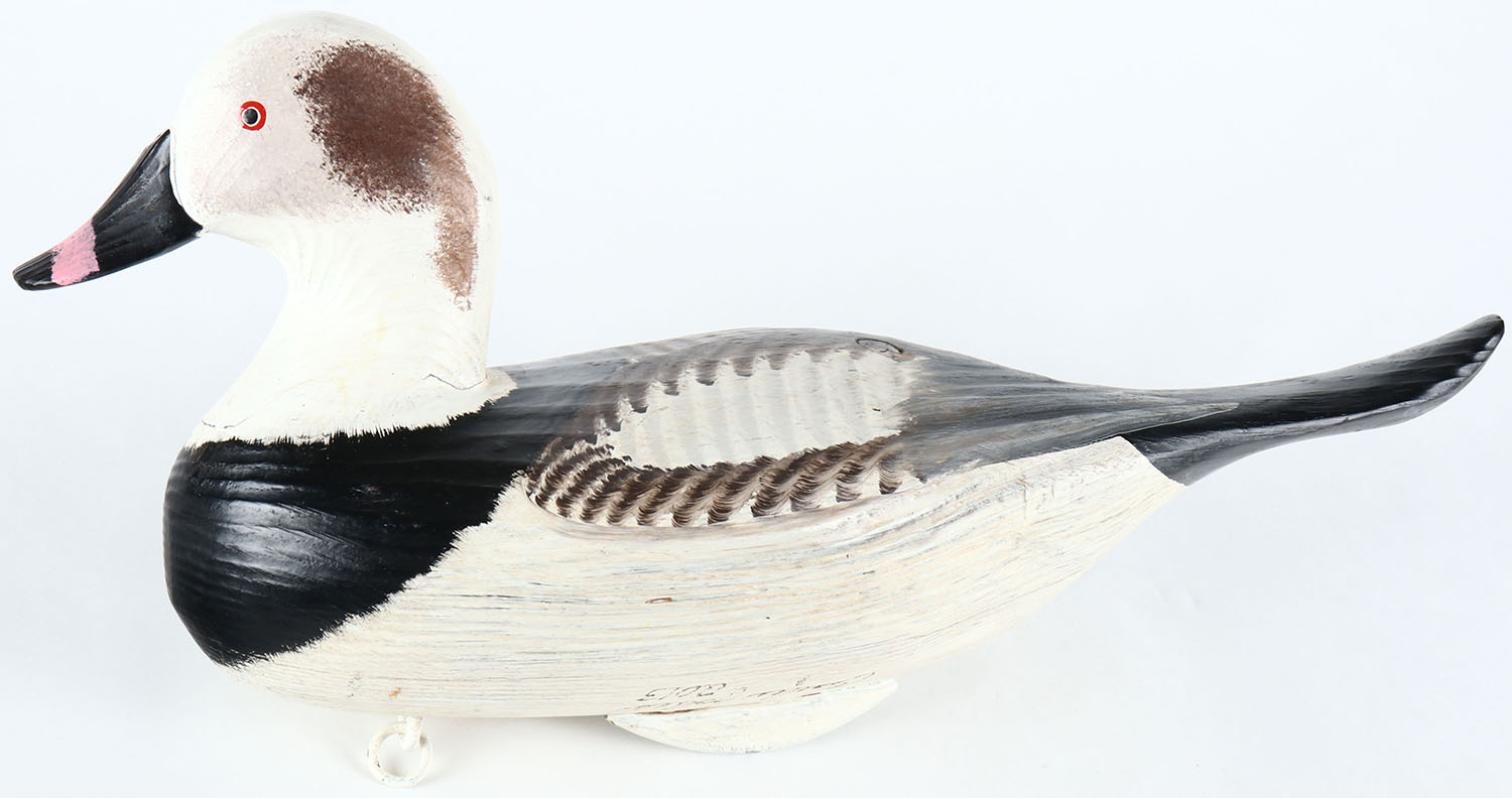 Long Tailed Duck (Oldsquaw) by Harry Jobes, Harve De Grace, MD. Painted eyes, solid wood, original paint, structurally excellent, signed by HARRY JOBES on bottom. Grade: MINT - Value: 50 to 100