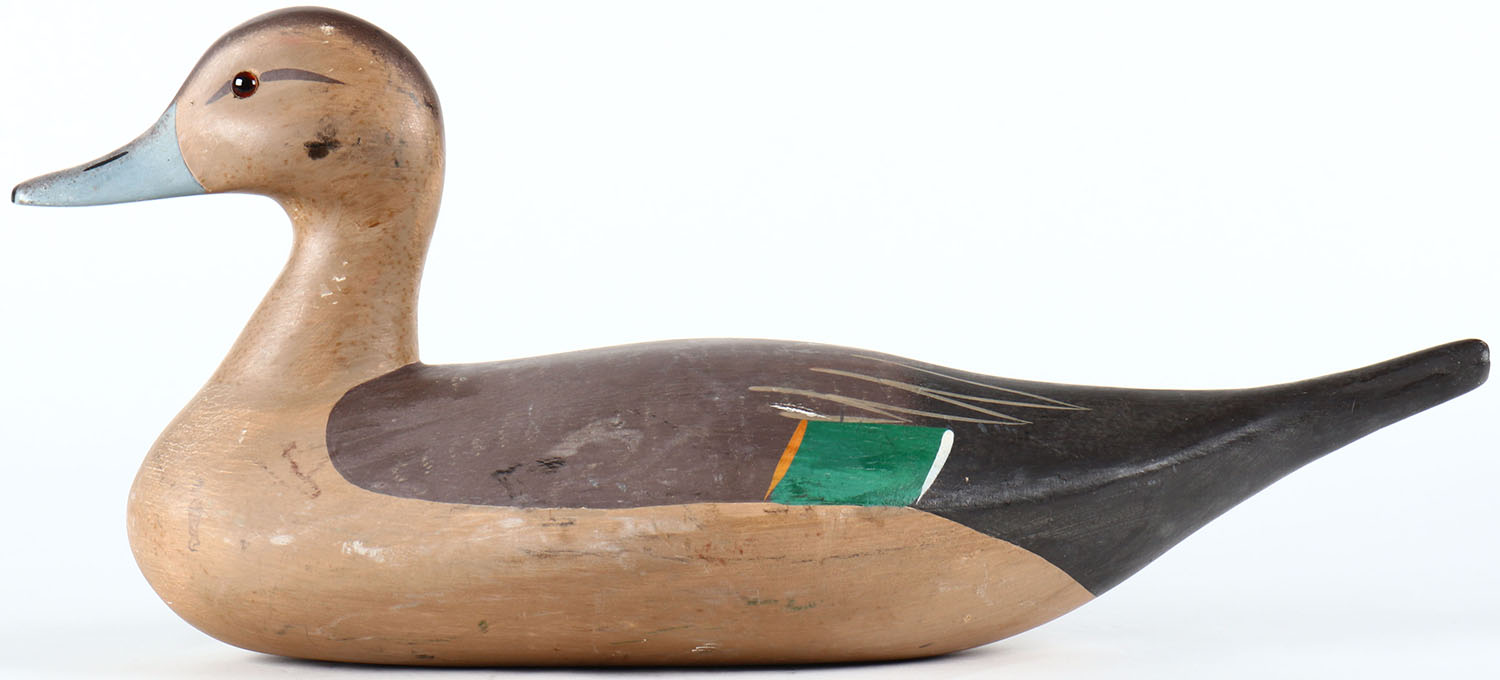 Pintail Hen by Jon W. Tieder, Cambridge, MD, glass eyes, solid wood, original paint, structurally excellent, signed on bottom. Grade: Excellent - Value: 50 to 100