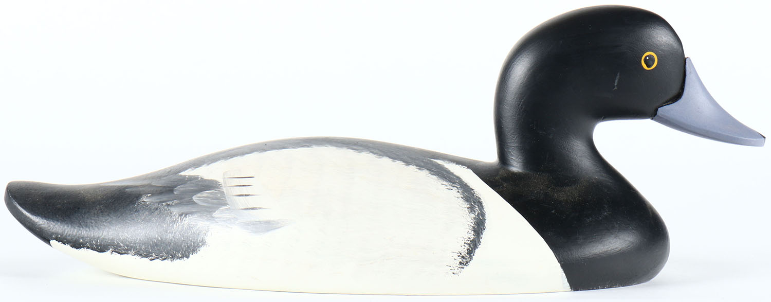 Bluebill Drake by Jim Pierce, Havre de Grace, MD, painted eyes, solid wood, original paint, structurally excellent, signed on bottom. Grade: MINT - Value: 50 to 100