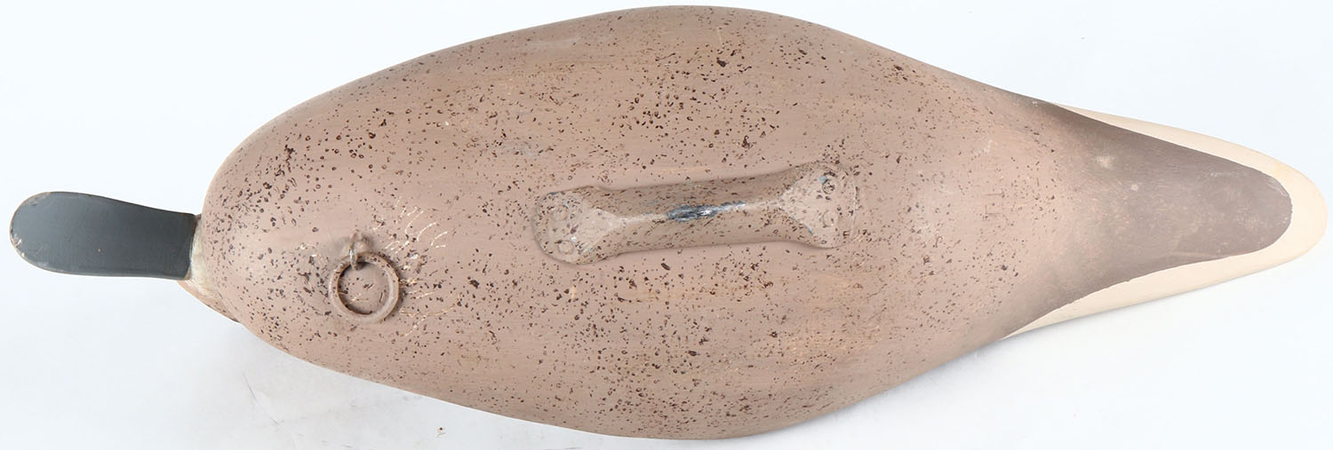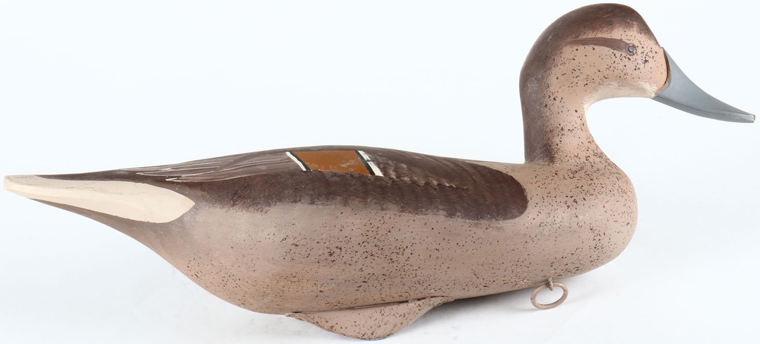 Pintail Hen by unknown Maryland maker - however signed on bottom under tie line, painted eyes, solid wood, original paint, structurally excellent. Grade: Excellent - Value: 70 to 150