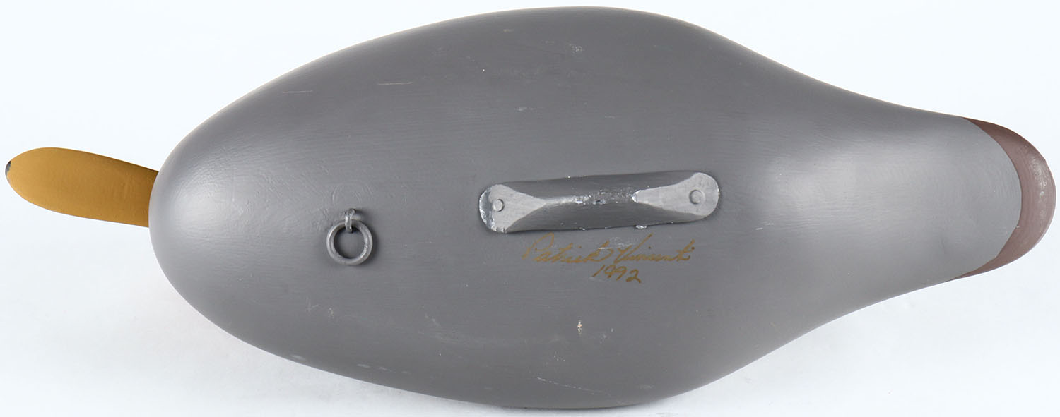 Hooded Merganser by Patrick ''Pat'' Vincent, Churchville, MD, painted eyes, solid wood, original paint, structurally excellent, signed on bottom. Grade: Excellent ++ - Value: 50 to 100