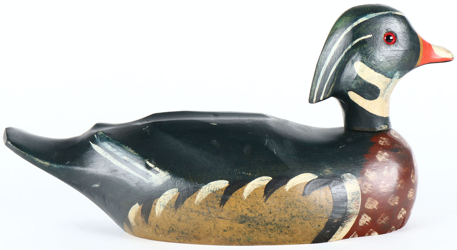 Woodduck Drake by unknown carver even though the bottom is signed by them, glass eyes, solid wood, original paint, structurally excellent. Grade: Excellent - Value: 40 to 80