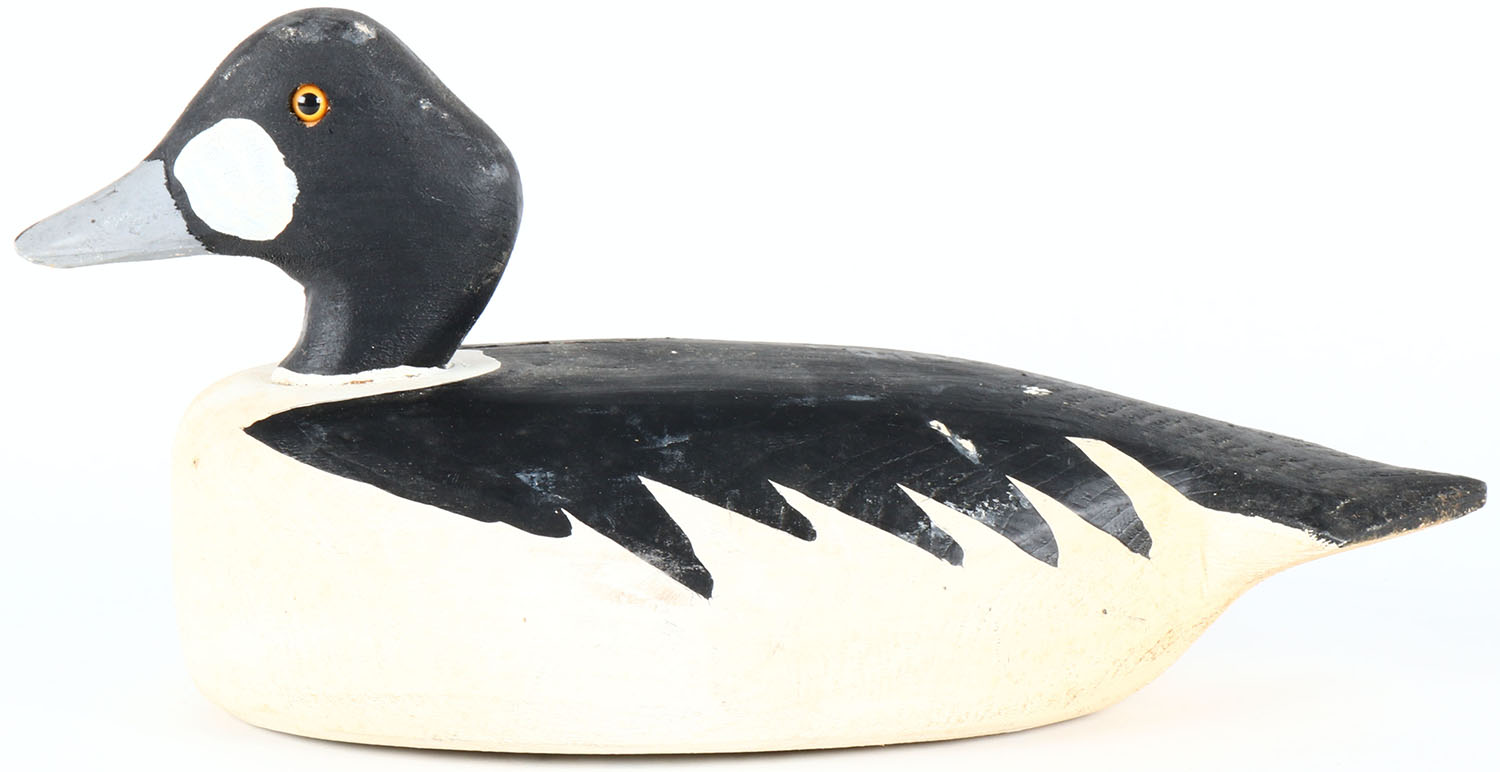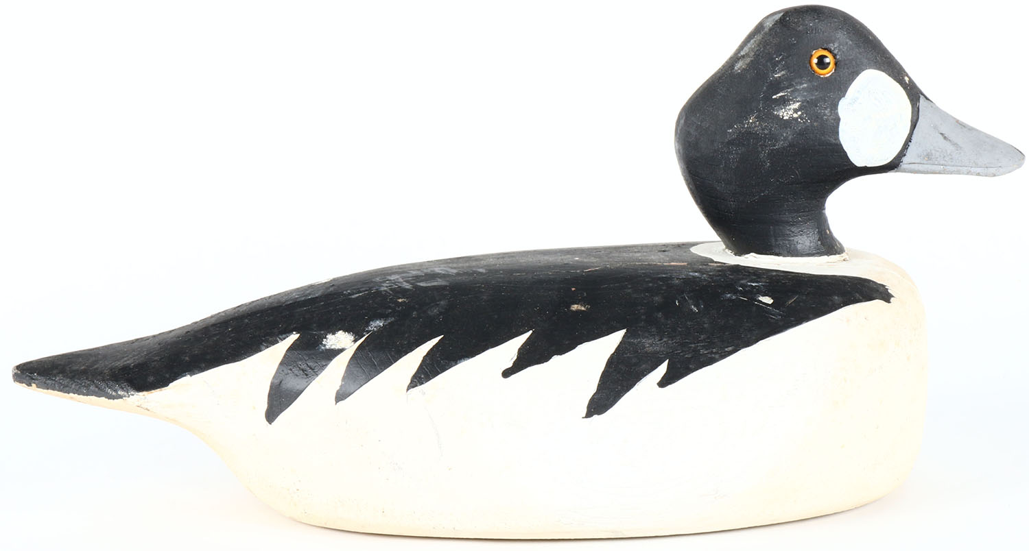 Goldeneye Drake by Archie Cameron Kingston, glass eyes, solid wood, original paint, structurally excellent, signed on bottom. Grade: Excellent - Value: 40 to 80