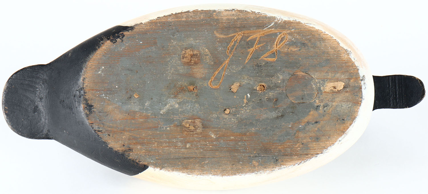 Goldeneye Drake by Jim Salisbury, Ontario, glass eyes, solid wood, original paint, structurally excellent, signed on bottom. Grade: Excellent + - Value: 40 to 80