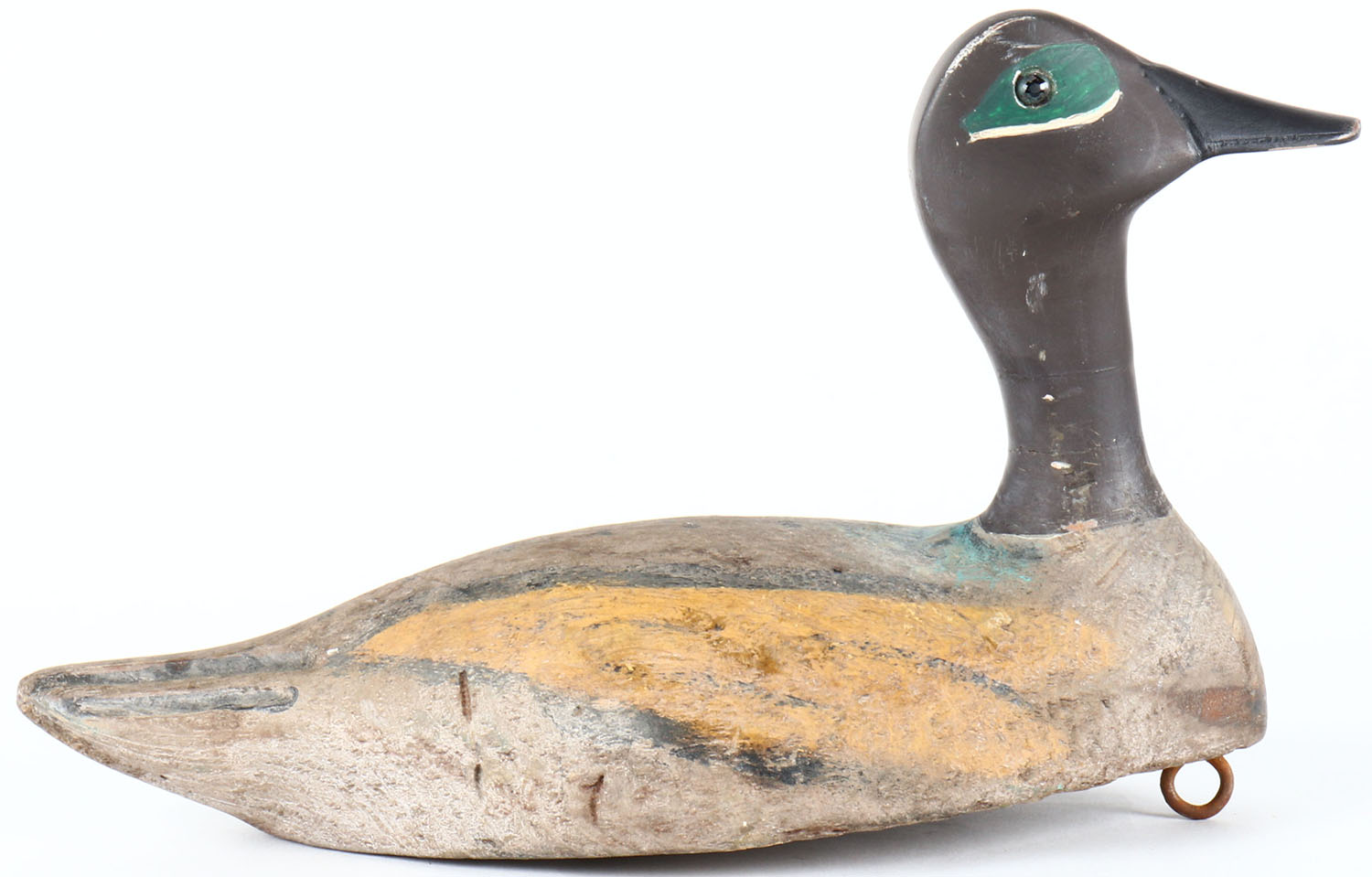 Green Wing Teal Drake by unknown Spanish maker, glass eyes, solid wood, original paint, structurally excellent. Grade: Excellent