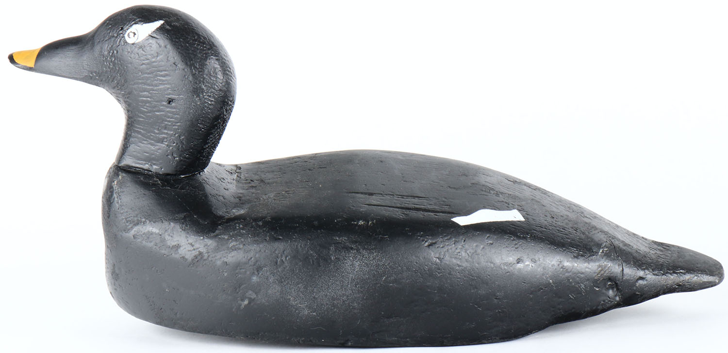 Scoter by unknown maker, painted eyes, solid wood, original paint, structurally excellent. Grade: Excellent - Value: 20 to 40