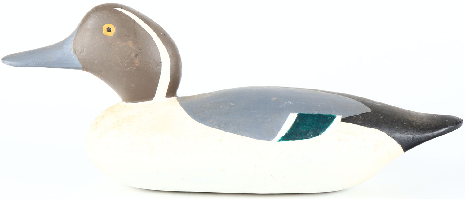 Pintail Drake by unknown factory, painted eyes, solid wood, collector repaint, structurally excellent. Grade: Excellent - Value: 20 to 40