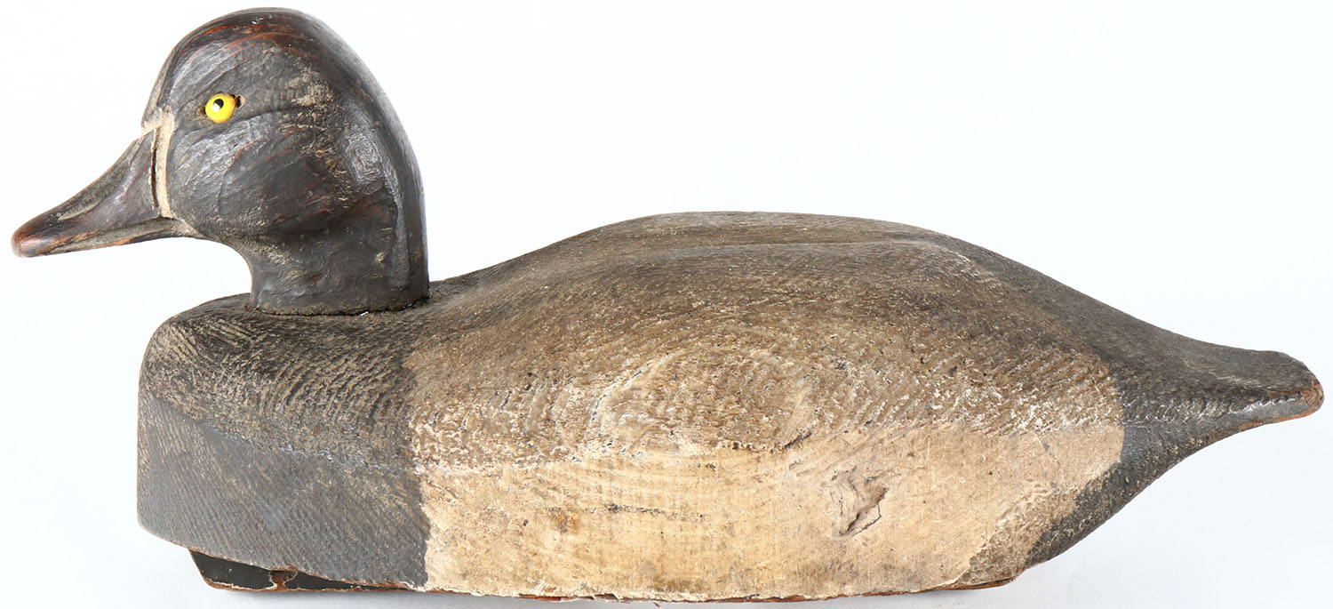 Bluebill Drake by unknown maker, glass eyes, solid wood, original paint, structurally excellent. Grade: Excellent + - Value: 40 to 80