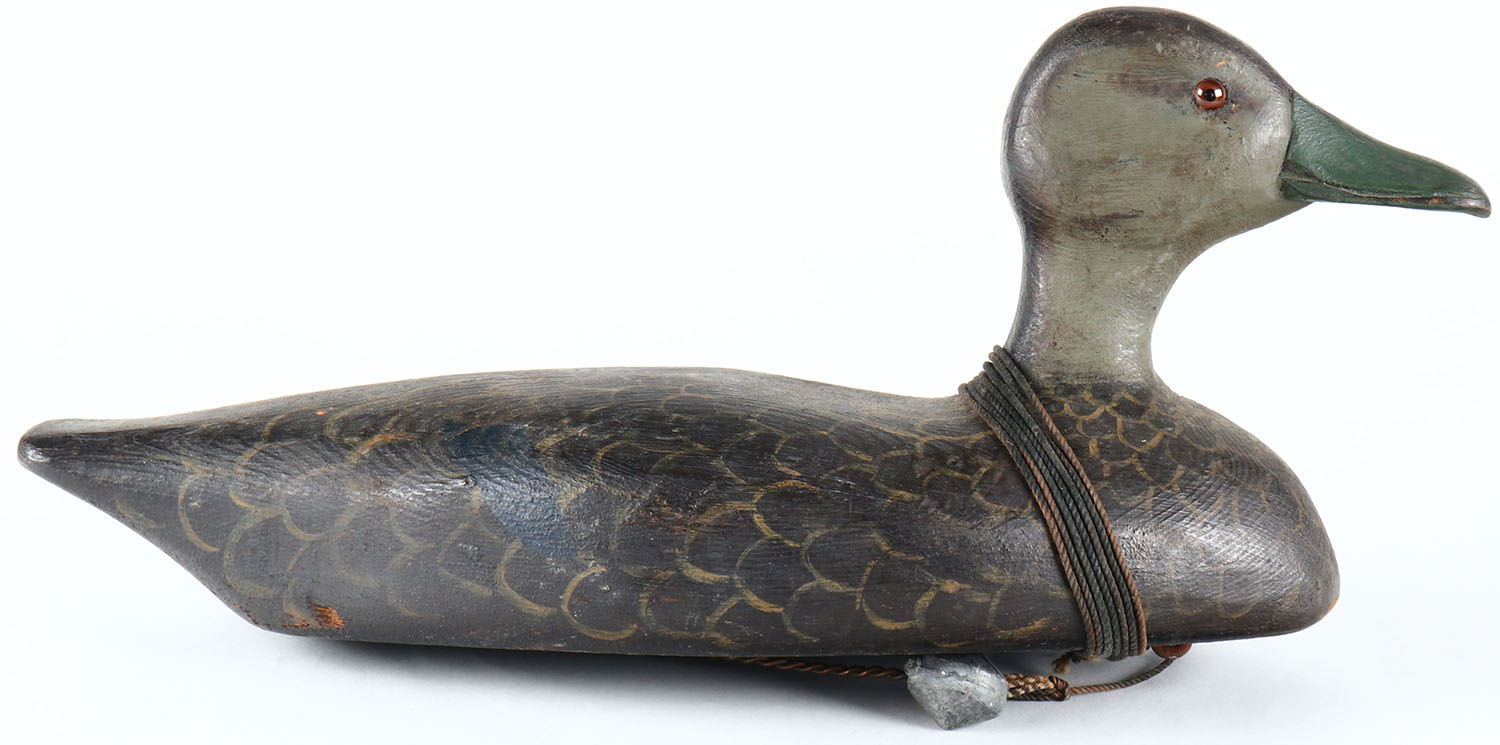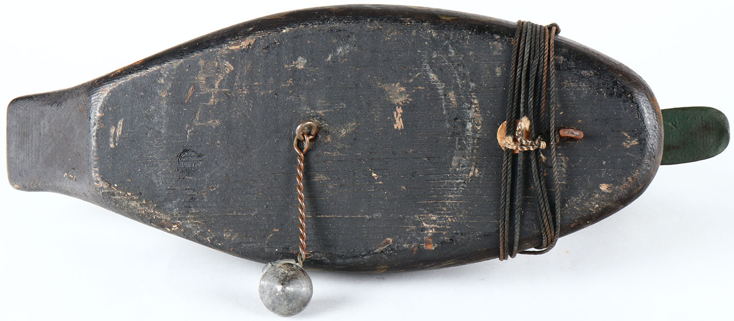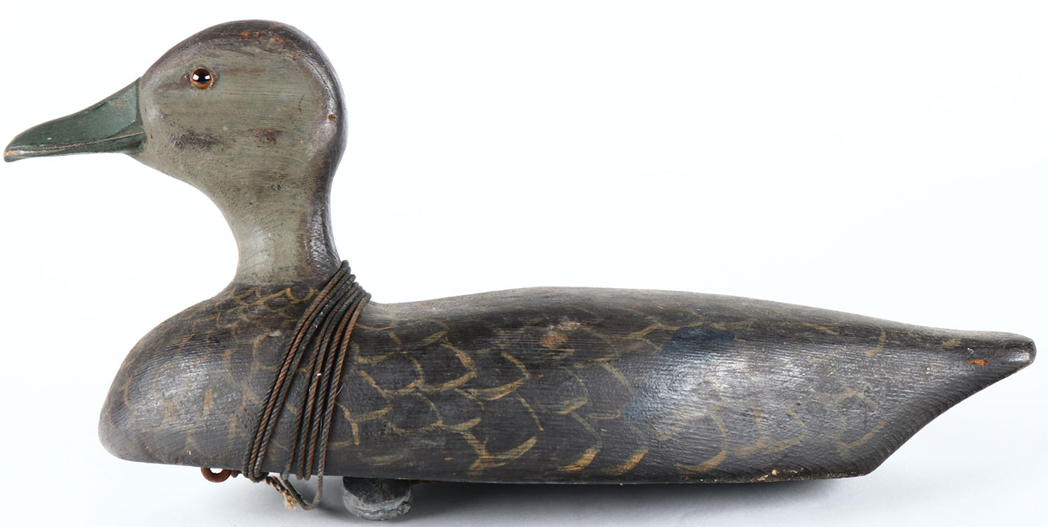 Black Duck by unknown Canadian maker, glass eyes, hollow wood, original paint, structurally excellent. Grade: Excellent - Value: 60 to 100