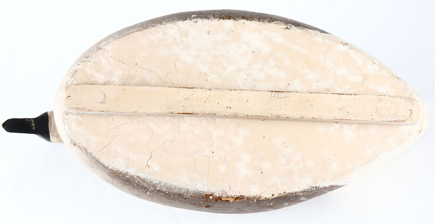 Canada Goose by unknown maker, tack eyes, hollow wood, original paint, has age cracks under neck. Grade: Very Good + - Value: 50 to 100
