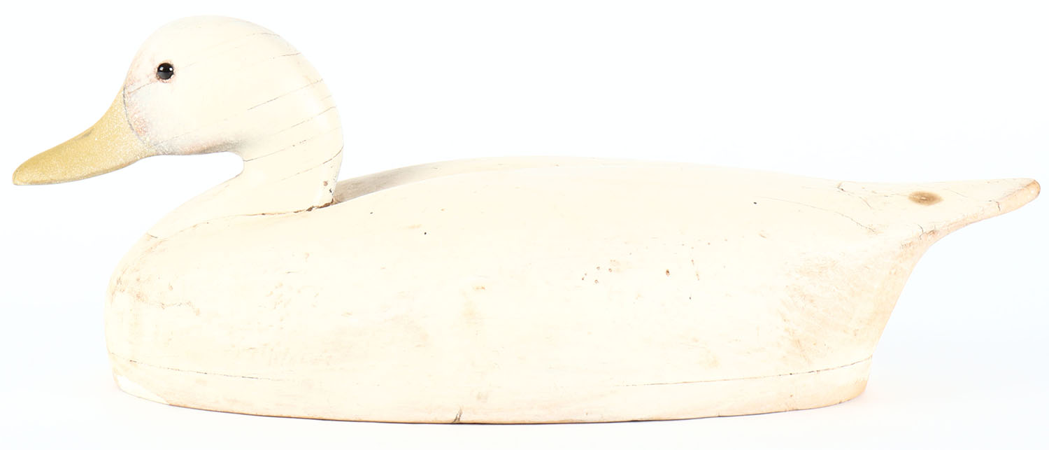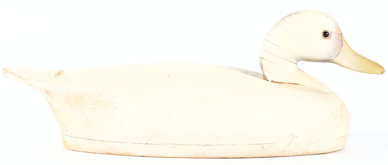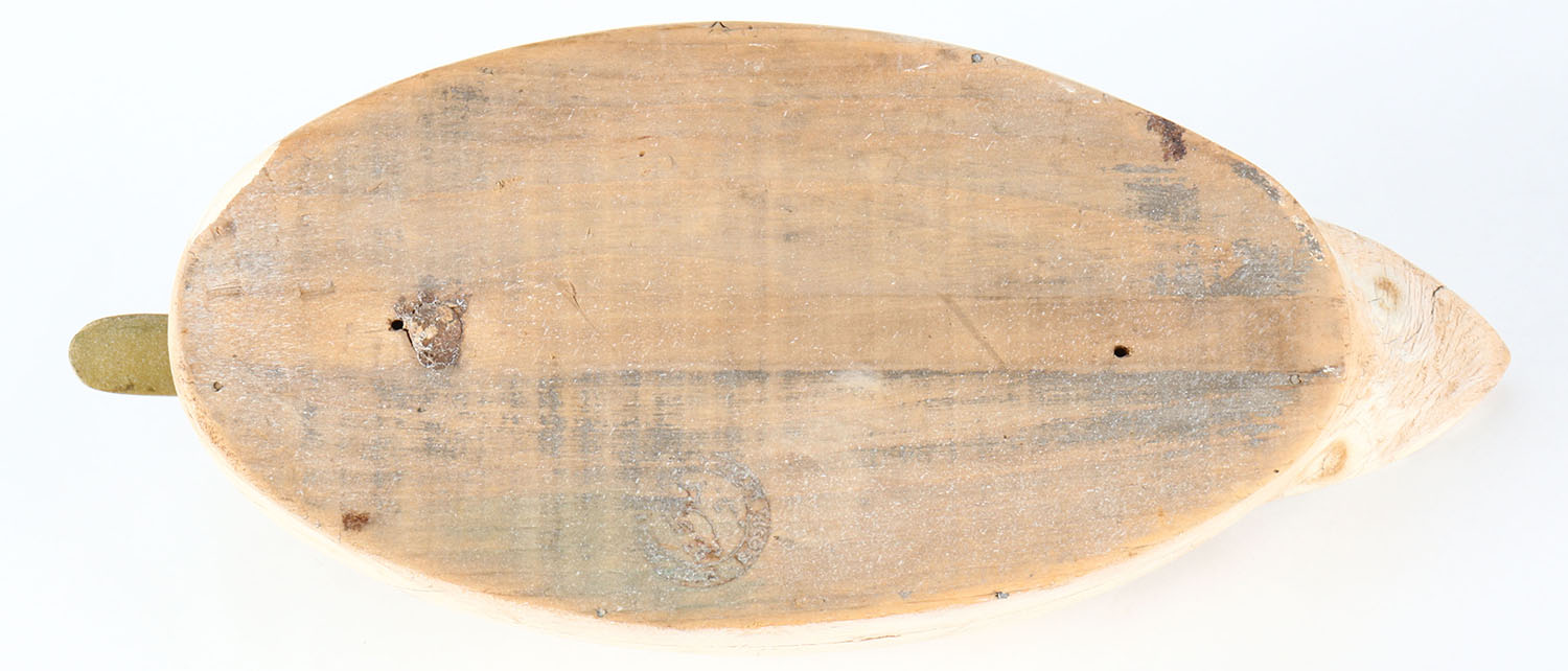 Mallard Decoy by Wildfowler Decoy Company, glass eyes, hollow wood, repainted to look like a Gull confidence decoy, structurally excellent. Grade: Very Good - Value: 20 to 40