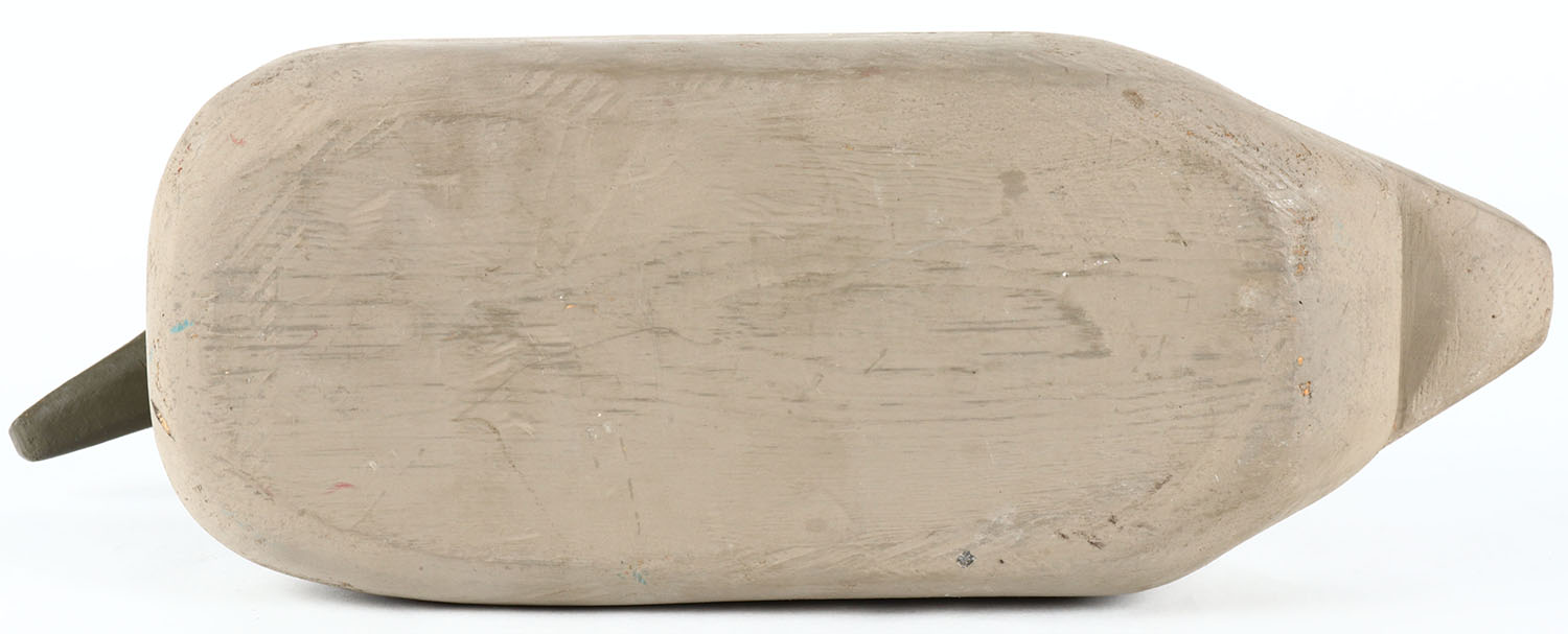 Farmyard Duck by unknown maker, no eyes, solid wood, original paint, head is loose. Grade: Very Good - Value: 20 to 40