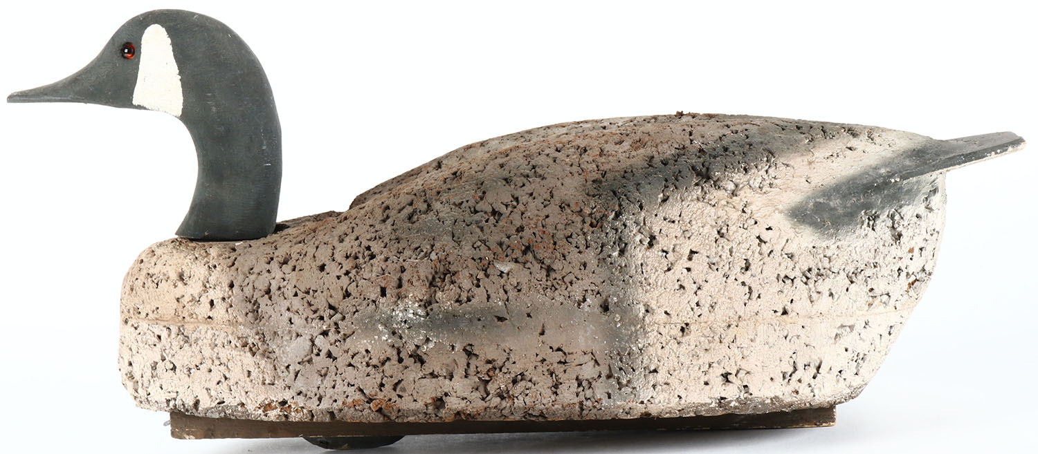 Canada Goose by Tuveson Manufacturing, Minnesota, glass eyes, solid cork body, original paint, head comes completely off. Grade: Very Good + - Value: 30 to 60