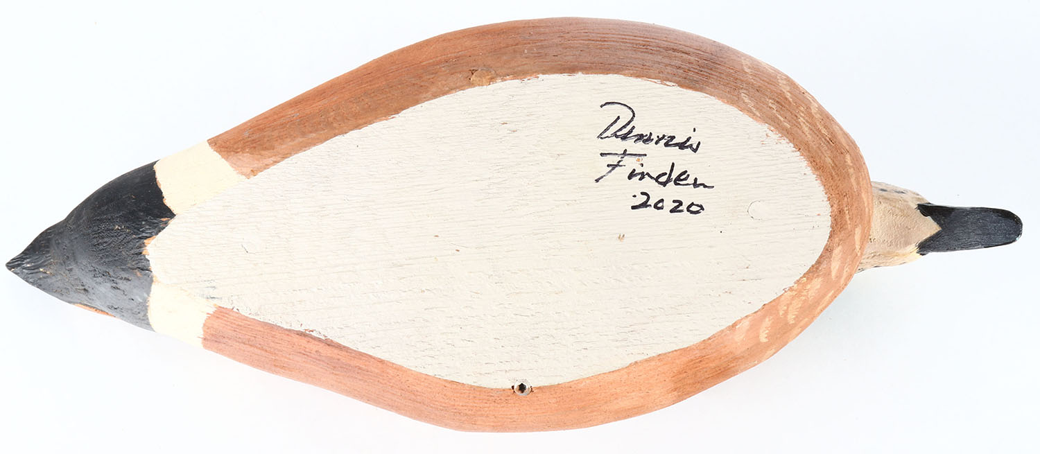 Widgeon Drake by Dennis Finden, MN, glass eyes, hollow wood, original paint, structurally excellent, signed on bottom by maker. Grade: Excellent - Value: 30 to 60