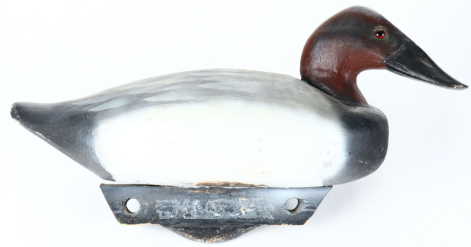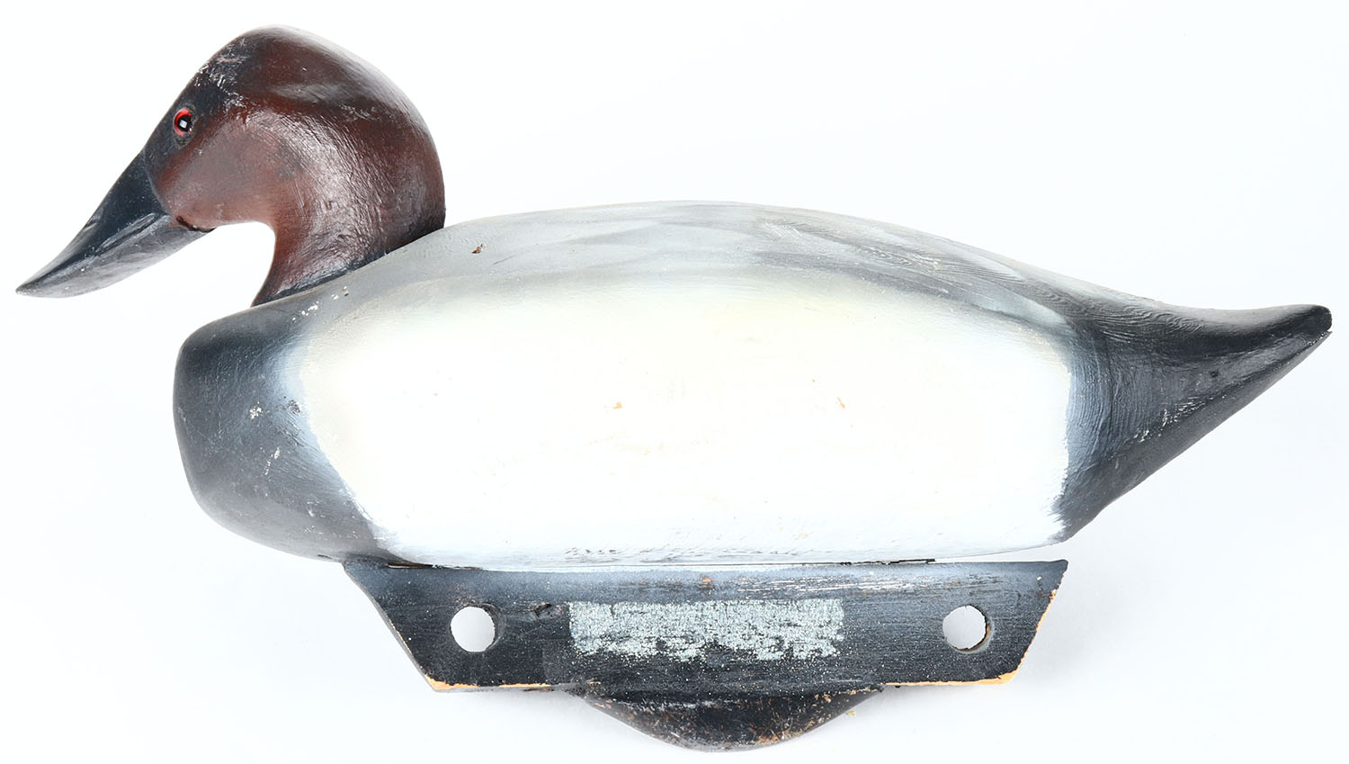 Canvasback Drake by unknown maker, glass eyes, solid wood, original paint, structurally excellent. Grade: Excellent - Value: 40 to 80