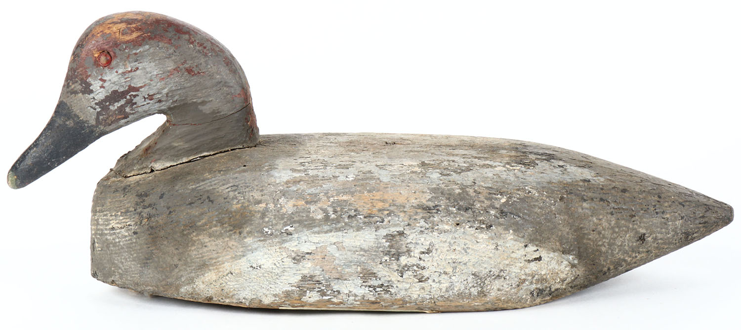 Canvasback Hen by unknown maker, glass eyes, hollowed out body, old hunter repaint with typical wear. Grade: Very Good - Value: 20 to 40