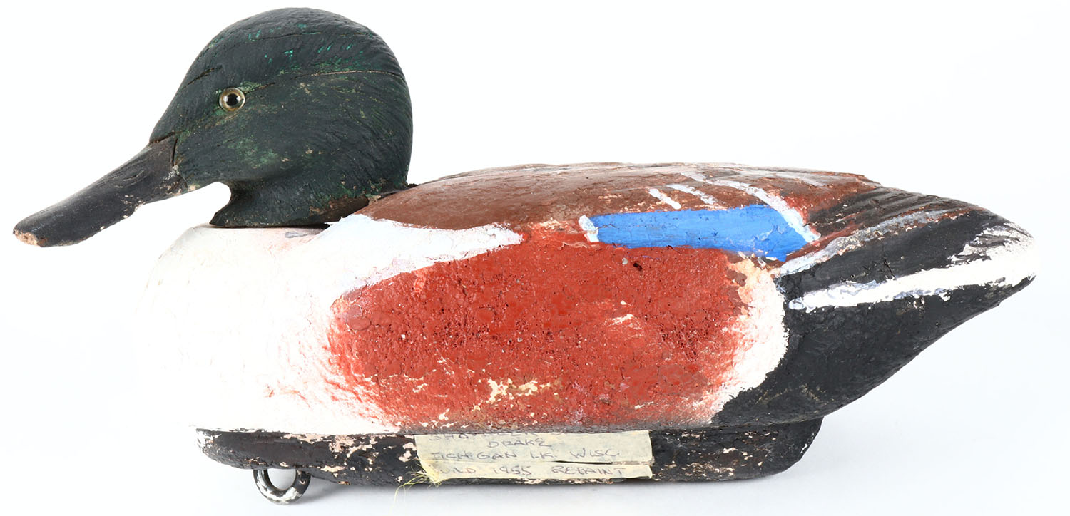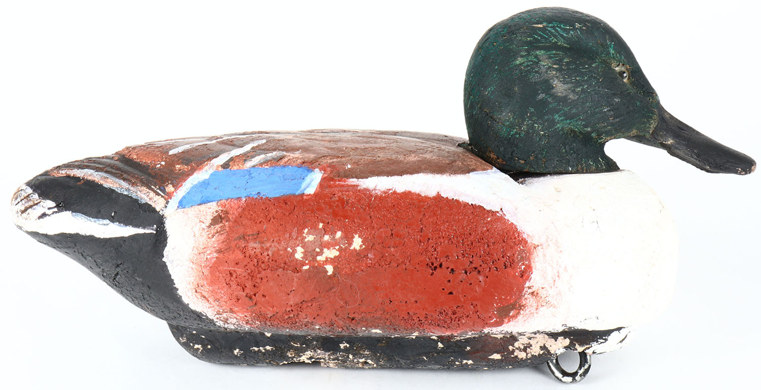 Shoveler Drake by unknown maker, glass eyes, solid styrofoam, old hunter repaint, structurally excellent. Grade: Excellent - Value: 6 to 20