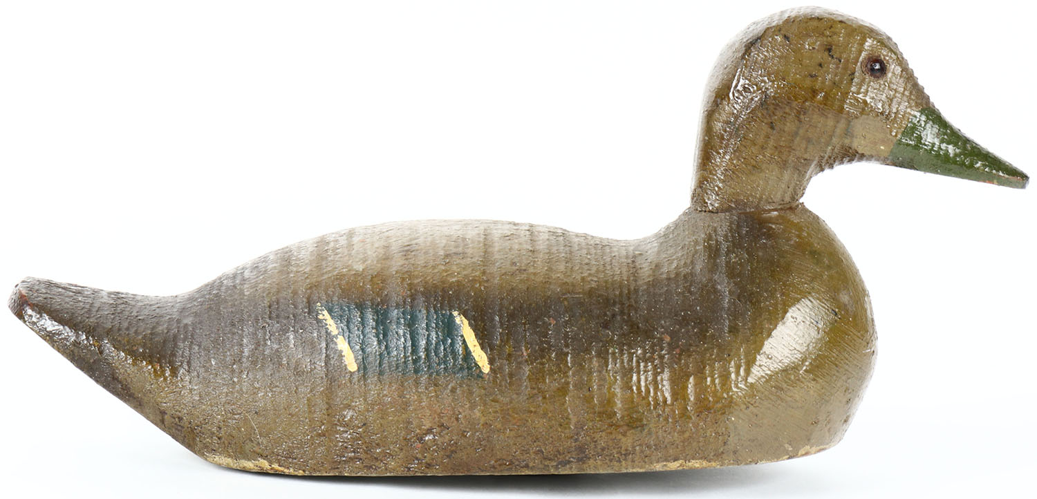 Hen Mallard by Animal Trap Company, Pascagoula, MS, glass eyes, solid wood, original paint protected by an old coat of varnish, structurally excellent. Grade: Excellent - Value: 20 to 40