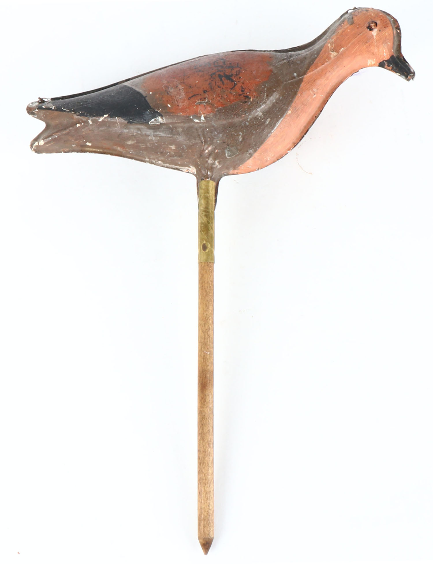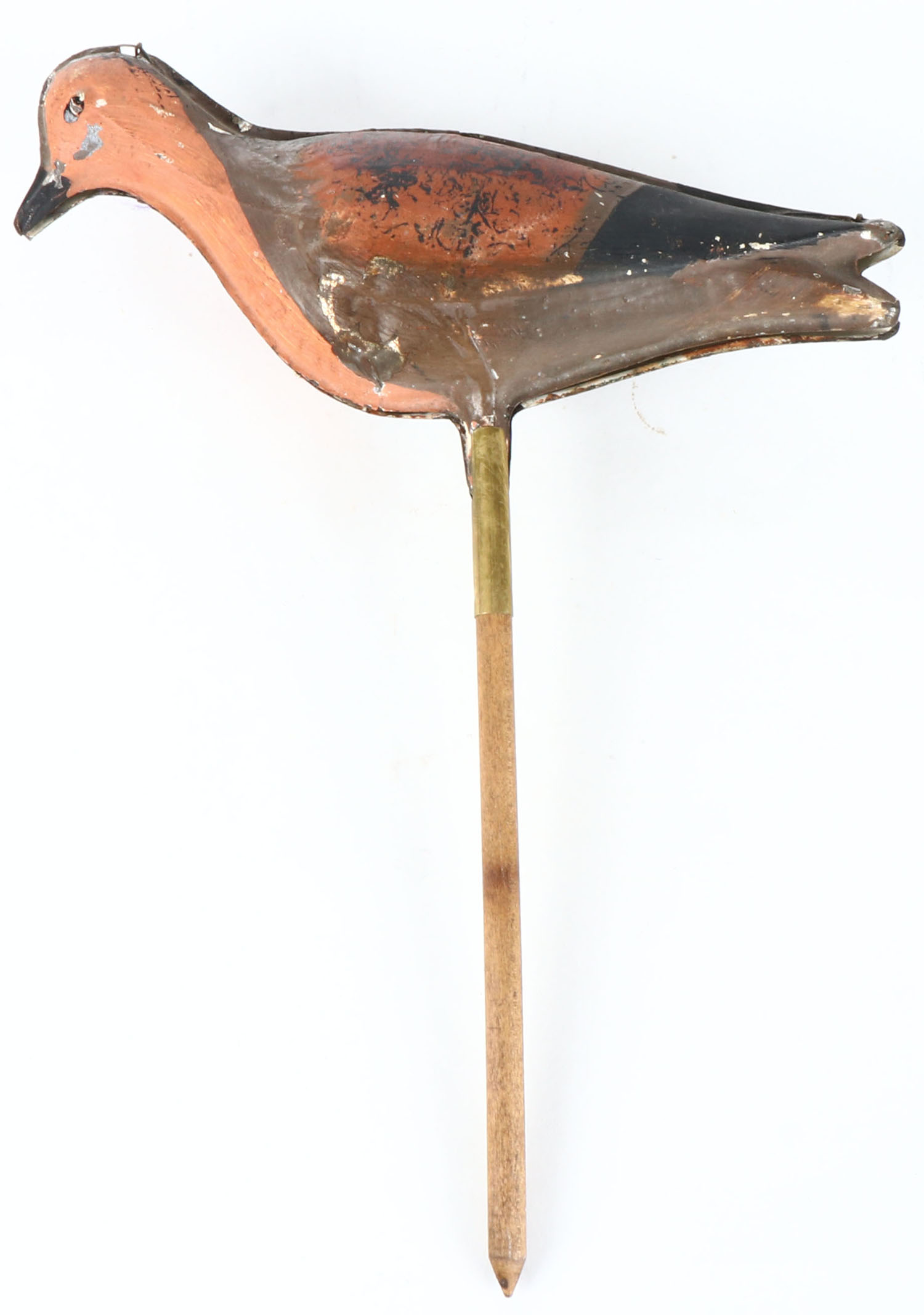Metal 2pc Plover commonly referred to as Tinnies, Shorebird likely by WM. Read and Sons, competitor of Strater & Sohier, Boston MA, painted eyes, with wire hinges, original paint, 10'' OAL. Grade: Excellent - Value: 50 to 150
