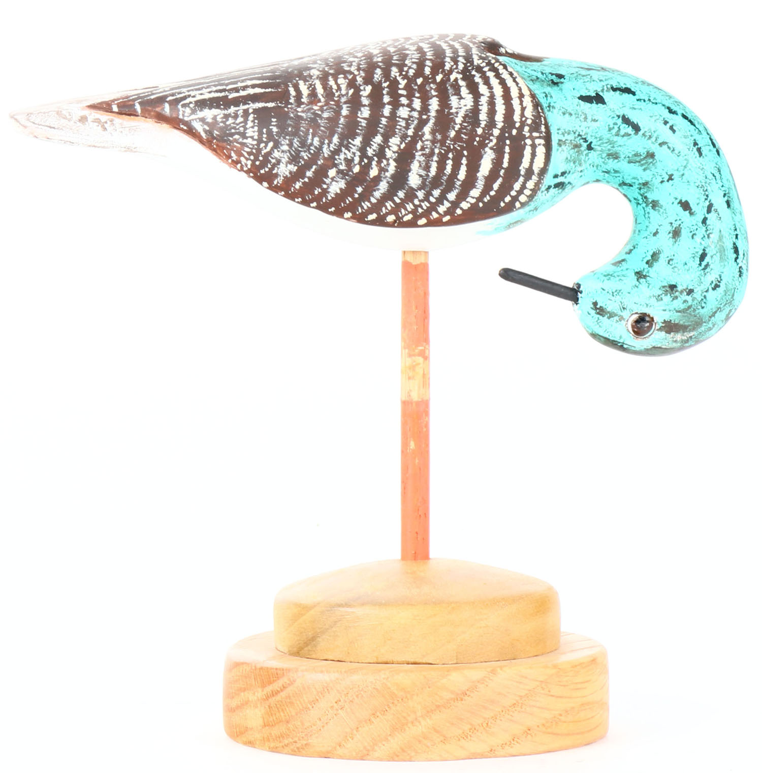 ? Shorebird by Stor Johann, glass eyes, solid wood on wood stand, original paint, structurally excellent, signed on bottom. Grade: Excellent - Value: 20 to 50