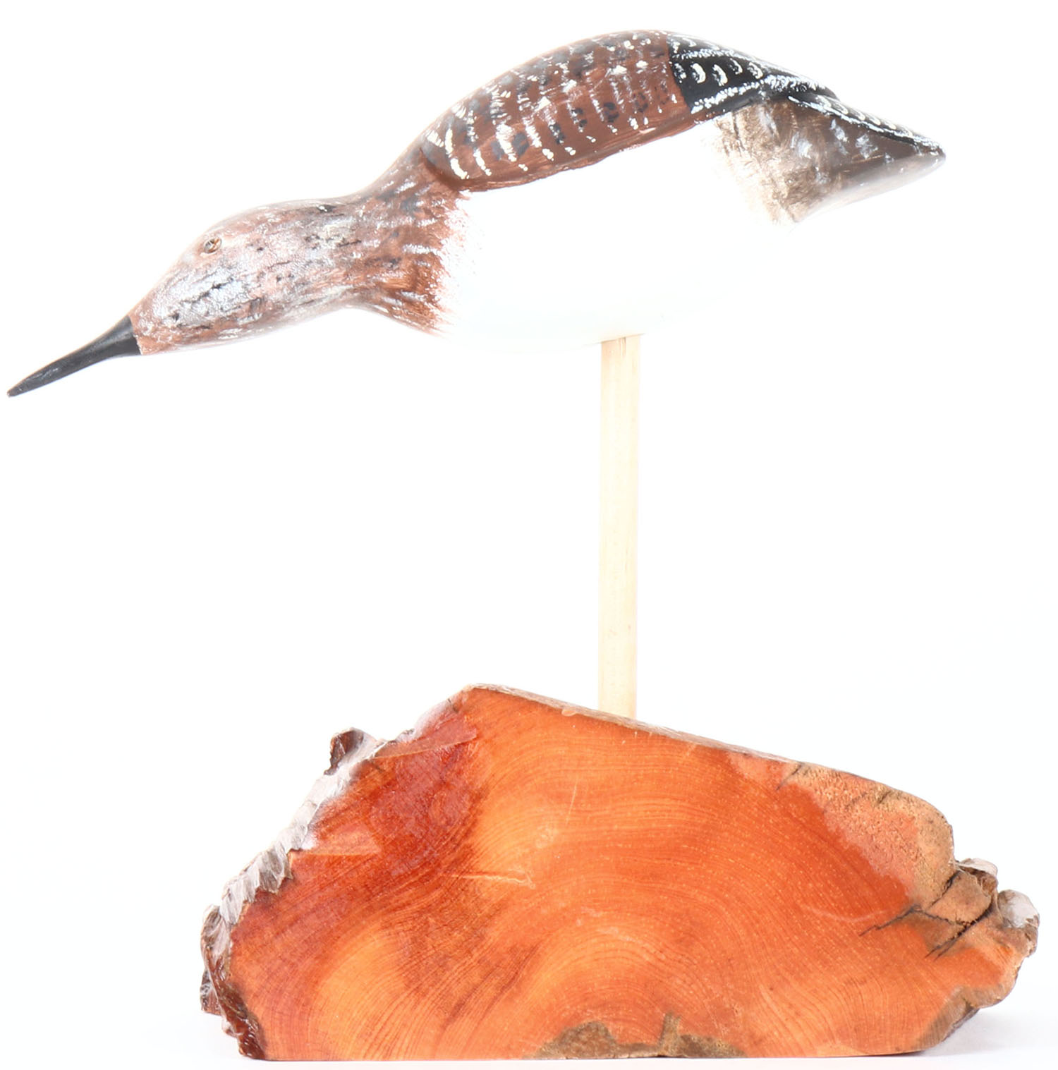 Shorebird by unknown maker, glass eyes, solid wood on wood stand, original paint, structurally excellent. Grade: MINT - Value: 10 to 20
