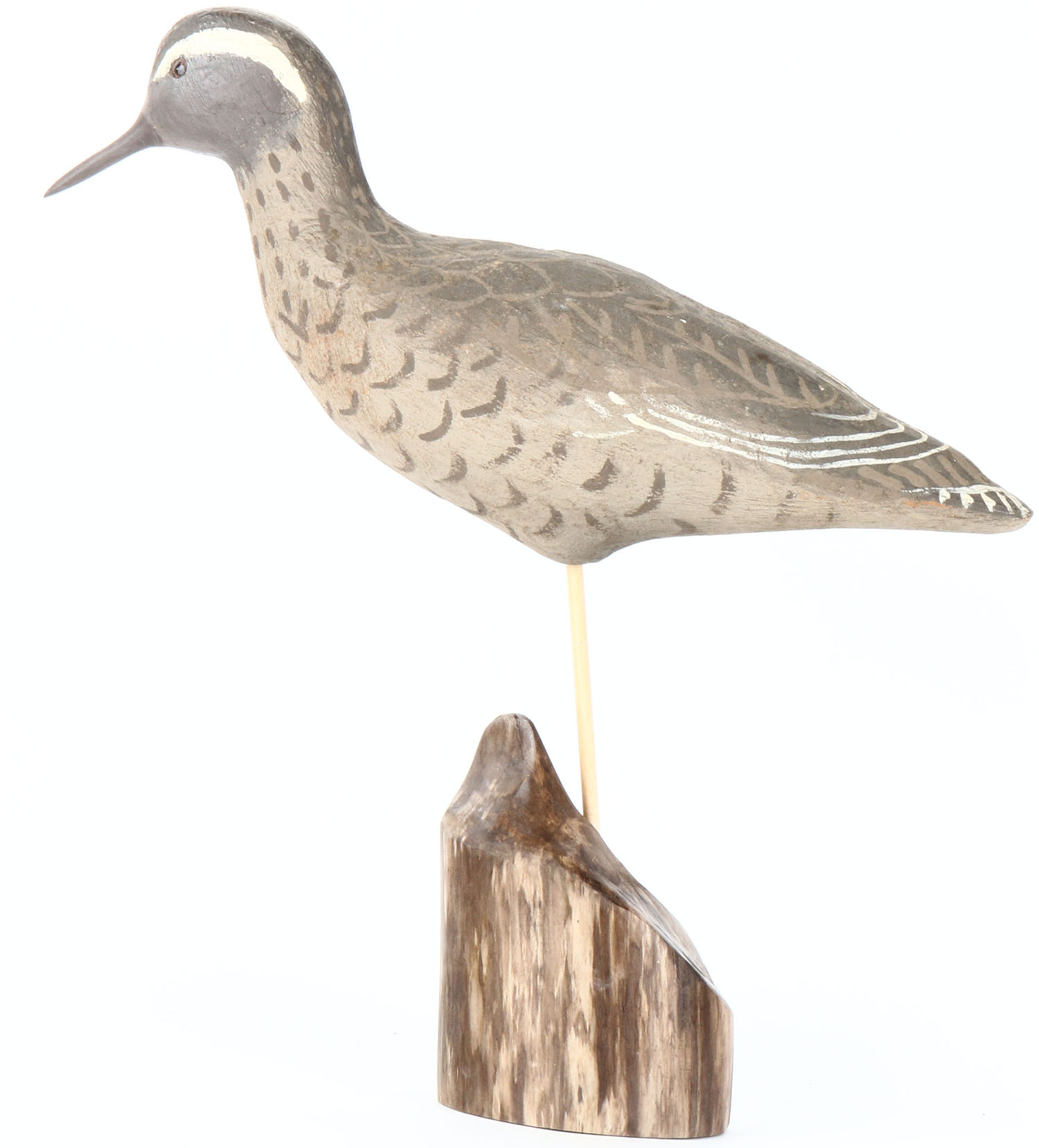 Shorebird by Herters, Minnesota, part of the 1893 series from the 1960s, glass eyes, solid wood, original paint, part of the bill is broke off, structurally excellent. Grade: Excellent - Value: 30 to 60