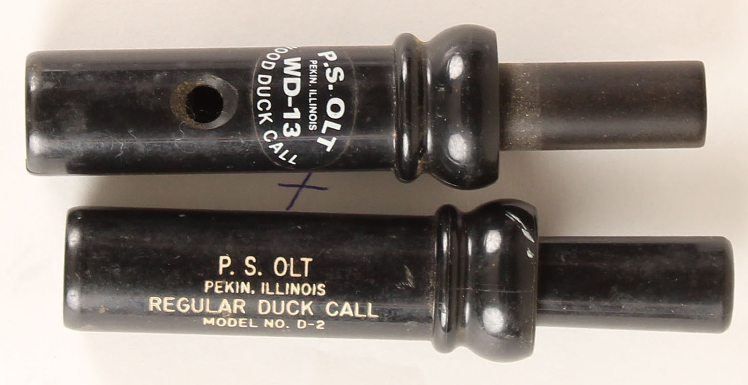 Lot of 2 P.S. Olt duck calls, model D-2 & WD-13 Wood Duck call. Grade: Excellent - Value: 20 to 60