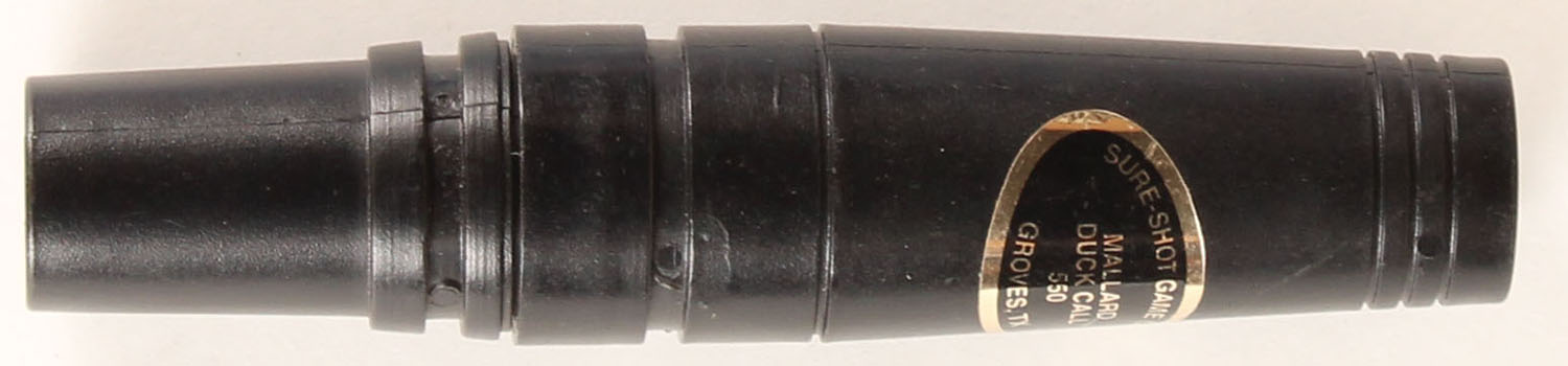 Sure Shot Mallard Duck Call No. 550, Groves TX, label is 100% intact. Grade: Excellent - Value: 10 to 30