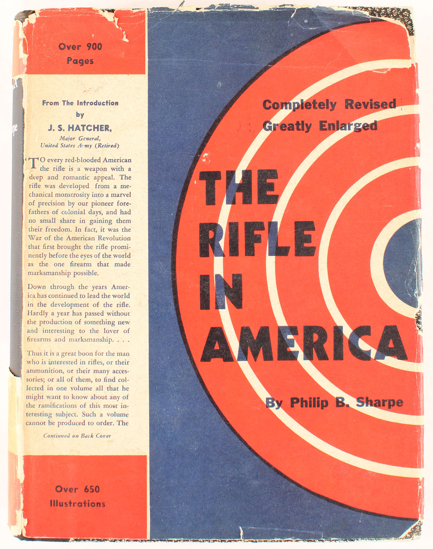 The Rifle in America by Phillip B. Sharpe 1953 Third Edition, 8'' x 10 1/2''. 800 pages, pages, clean binding tight, hardcover very good, dustjacket shows signs of wear. Value: $200 Grade: Very Good + - Value: 20 to 200