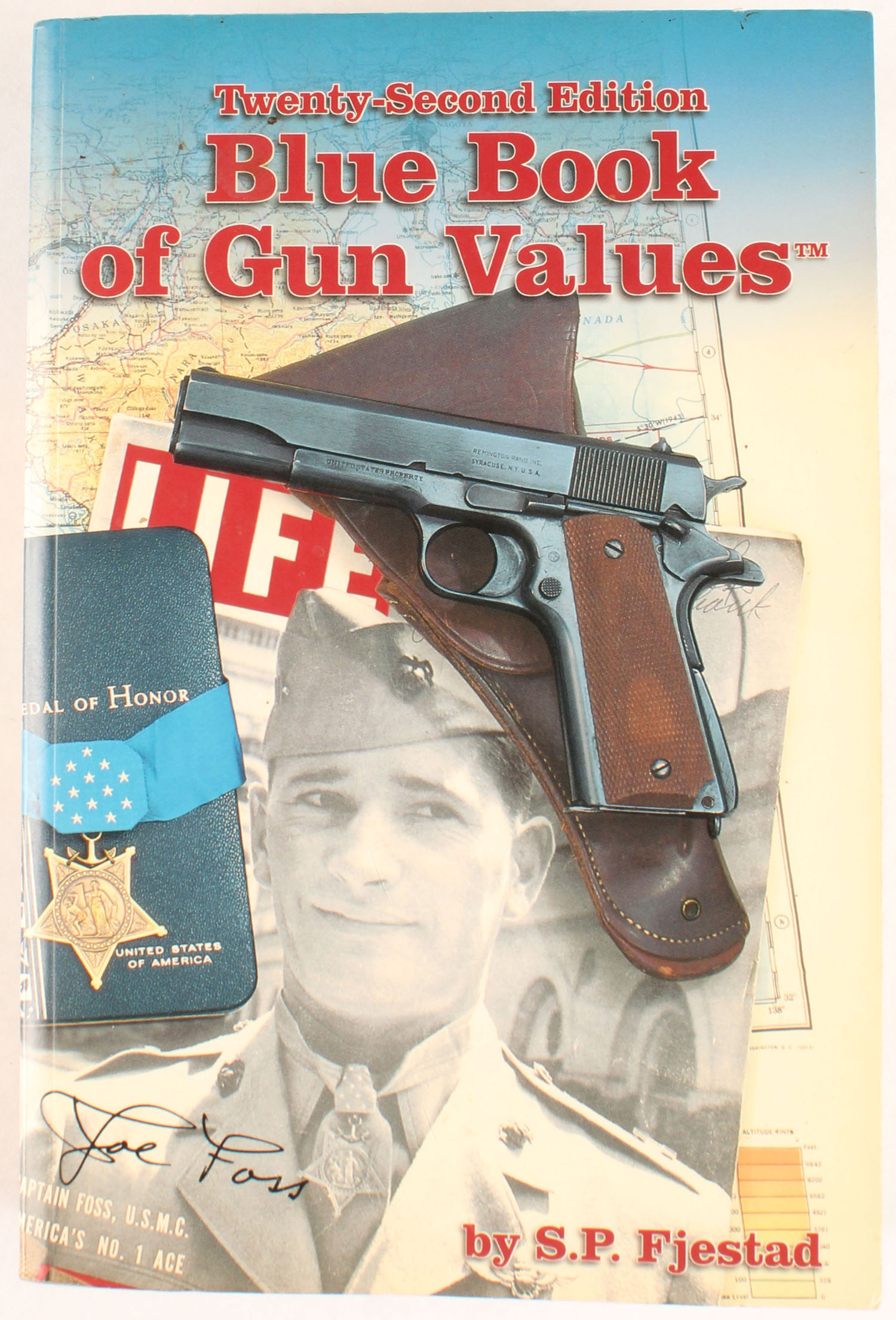 Blue Book of Gun Value Twenty-Second Edition by S.P. Fjestad 2001, 6'' x 9''. 1,608 pages, pages clean, binding tight, softcover excellent, colored images. Value: $80 Grade: Excellent + - Value: 4 to 80