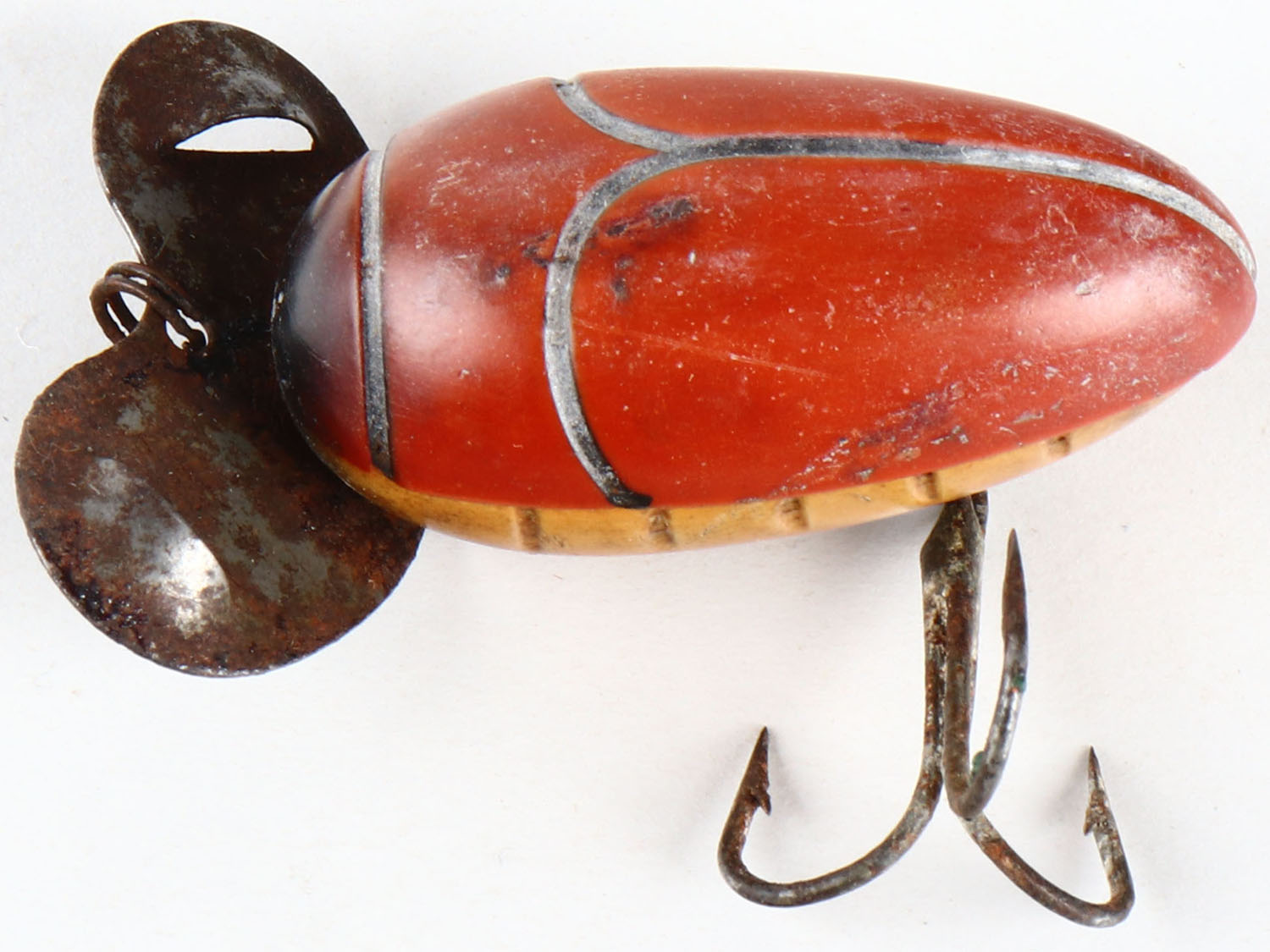 | Millsite Paddle Bug lure, red & white, no eyes, rusted front me...