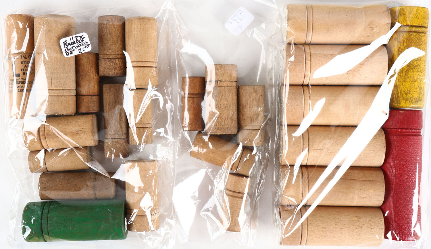 Large lot of fish hooks in wood tubes, most are full. Grade: Excellent - Value: 6 to 30