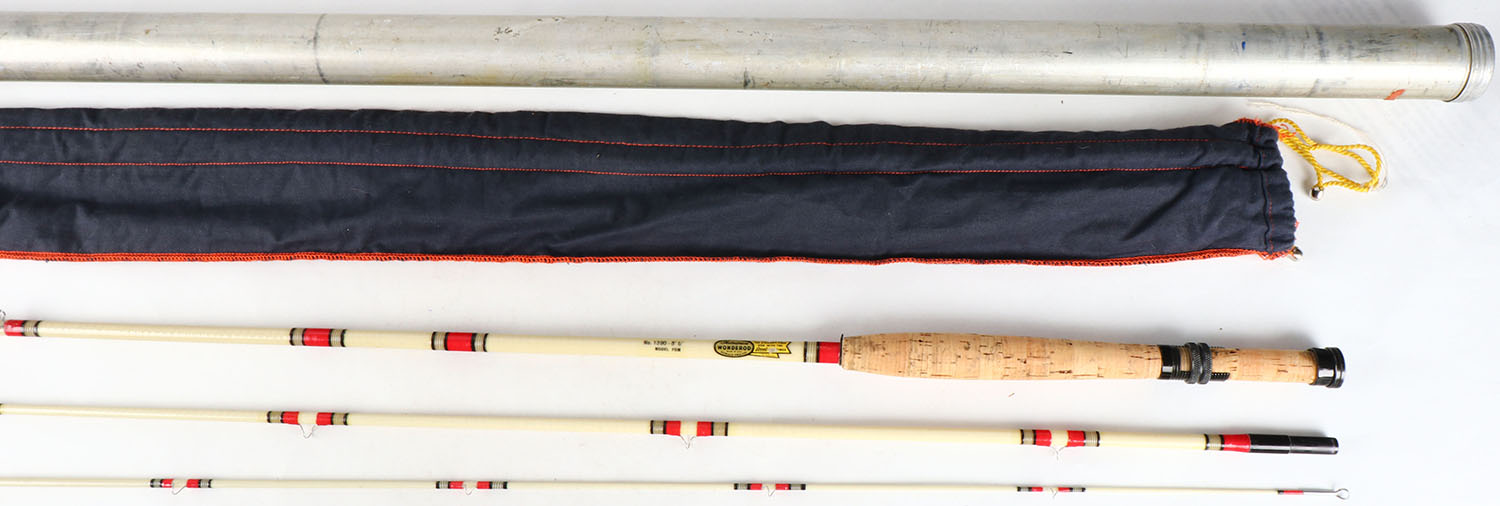 Shakespeare Wonderod, Model FDM, No, 1390, Fly Rod, 8' 6'', 3/1, cork handle is excellent, has cloth bag & aluminum tube. Grade: Excellent + - Value: 20 to 100