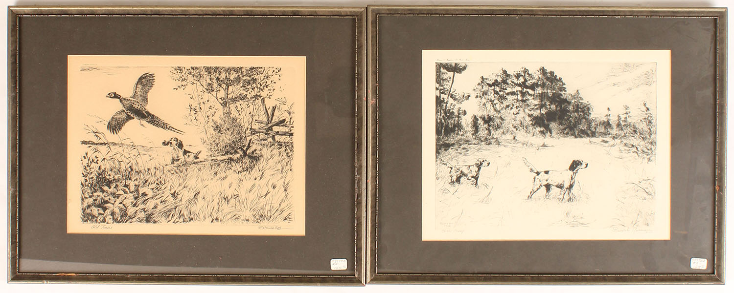 Lot of 2 framed prints of hunting images. Grade: Excellent - Value: 10 to 100