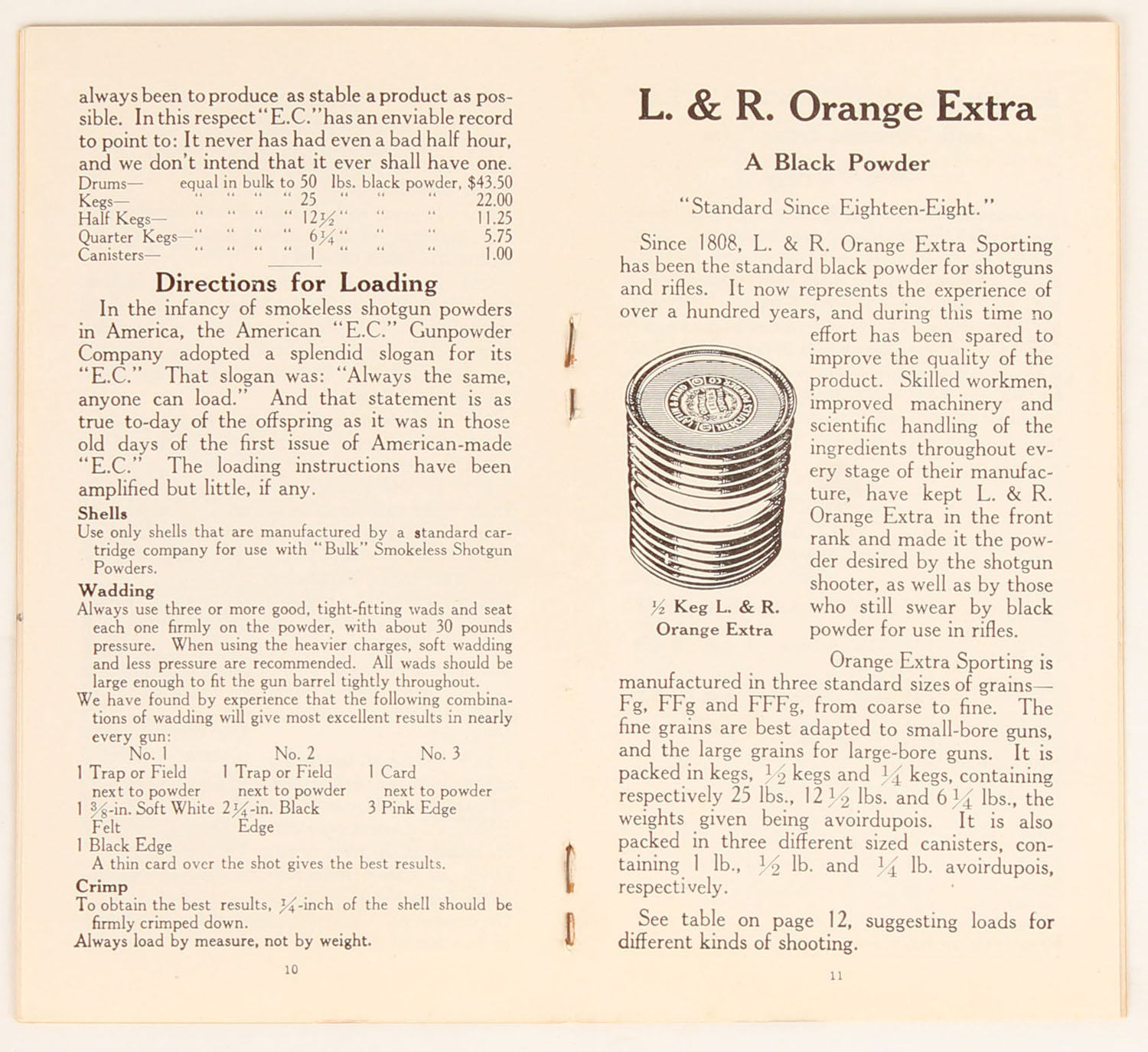 1914 Hercules Sporting Powders pocket catalog, pictures full powder cans, 20 pages. Grade: Excellent - Value: 10 to 50
