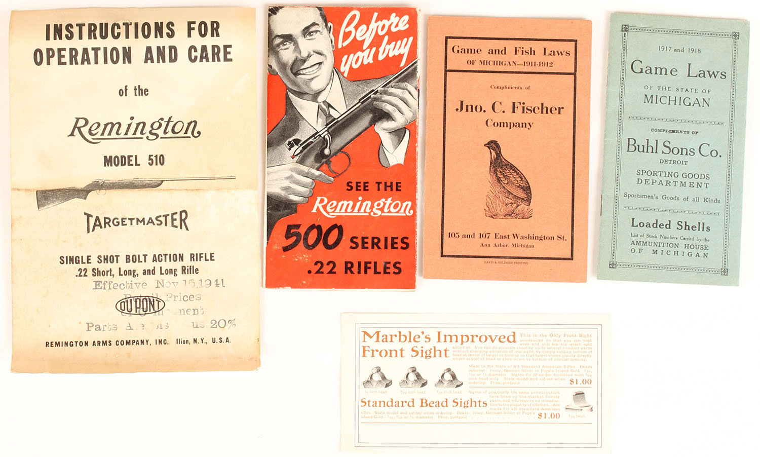 Remington 500 Series .22 Rifles brochure & other paper items, has three full color rifles on the inside. Grade: Excellent - Value: 10 to 50