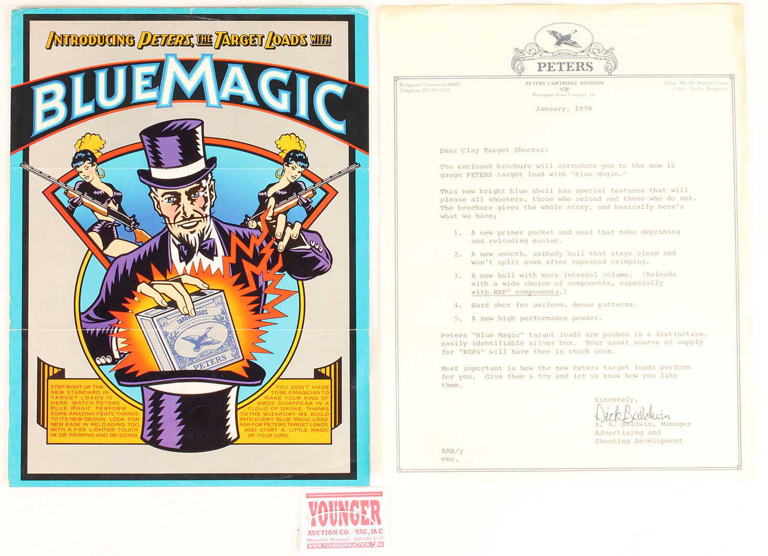 Peters Cart. Co. brochure on BLUE MAGIC shotshell box, has letterhead as well. Grade: Excellent - Value: 2 to 30