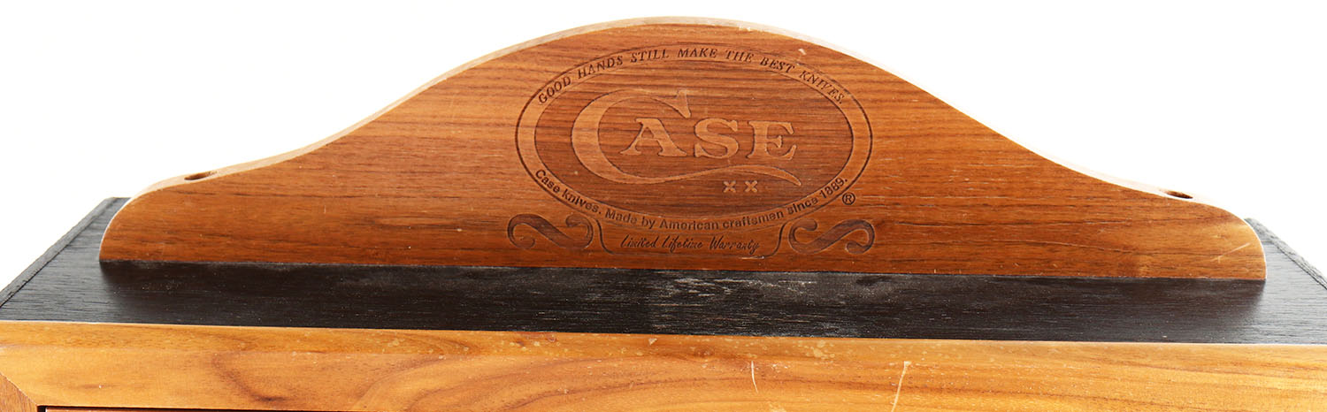 Large! Rare! Case Knife countertop dealer display case, wood and glass with lockable back, no key, empty no knives, 21'' x 8'' x 26'', some minor scuffs but still solid! Grade: Excellent + - Value: 200 to 100