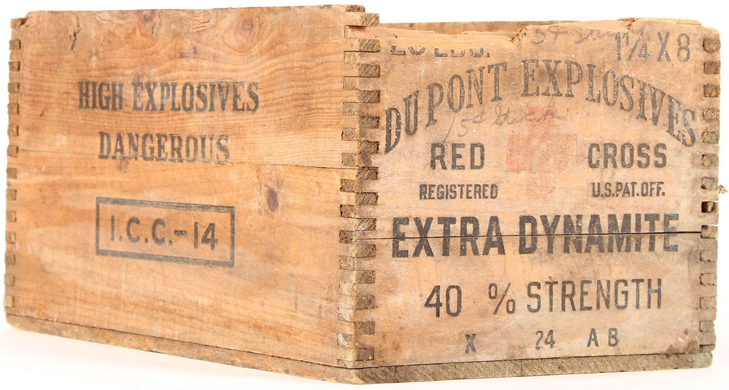 DuPont Explosives powder wood crate. Grade: Excellent - Value: 4 to 40