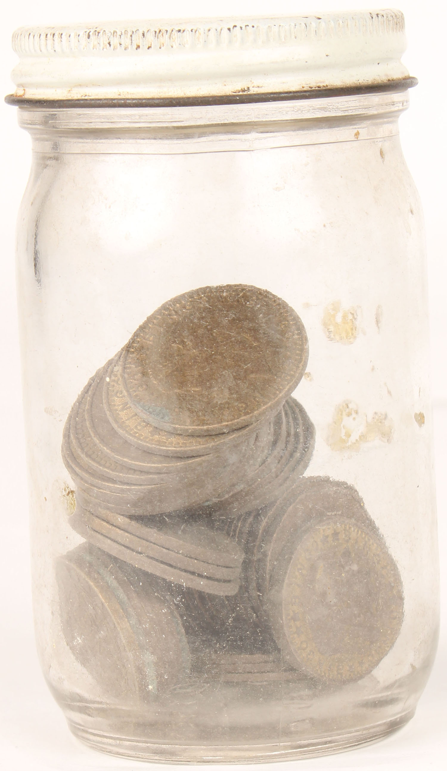 Lot of 50 old metal bingo coins with border stars and liberty head on each coin, rare! Grade: Very Good - Value: 20 to 80