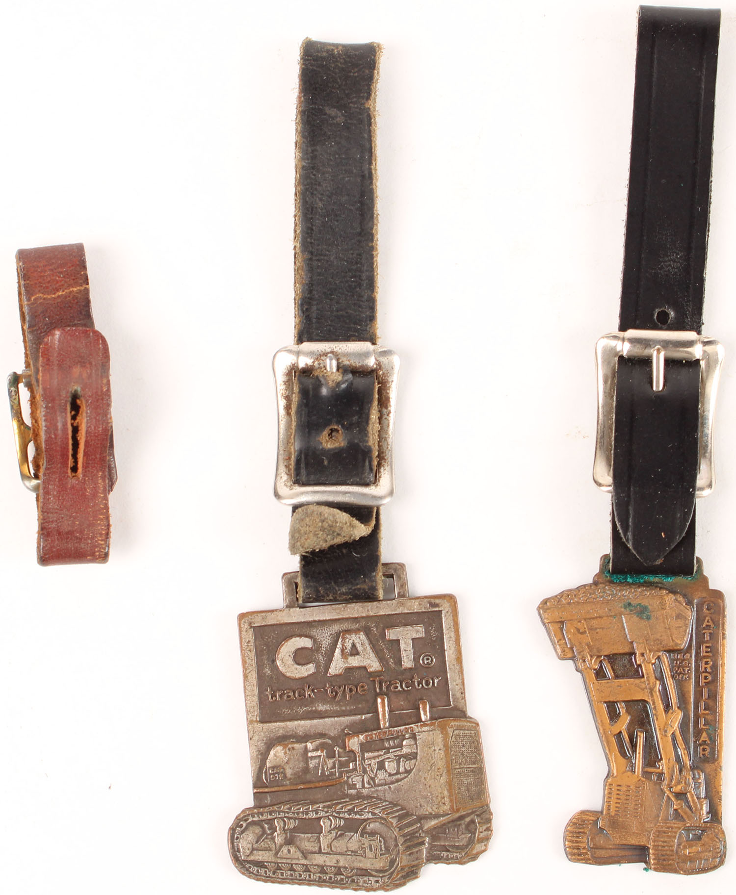 Lot of 2 Caterpillar tractor watch fobs, has age soiling. Grade: Very Good ++ - Value: 20 to 60