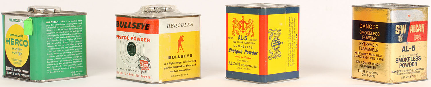 Lot of 4 powder tins, 3 partial and 1 empty. Grade: Excellent - Value: 4 to 40