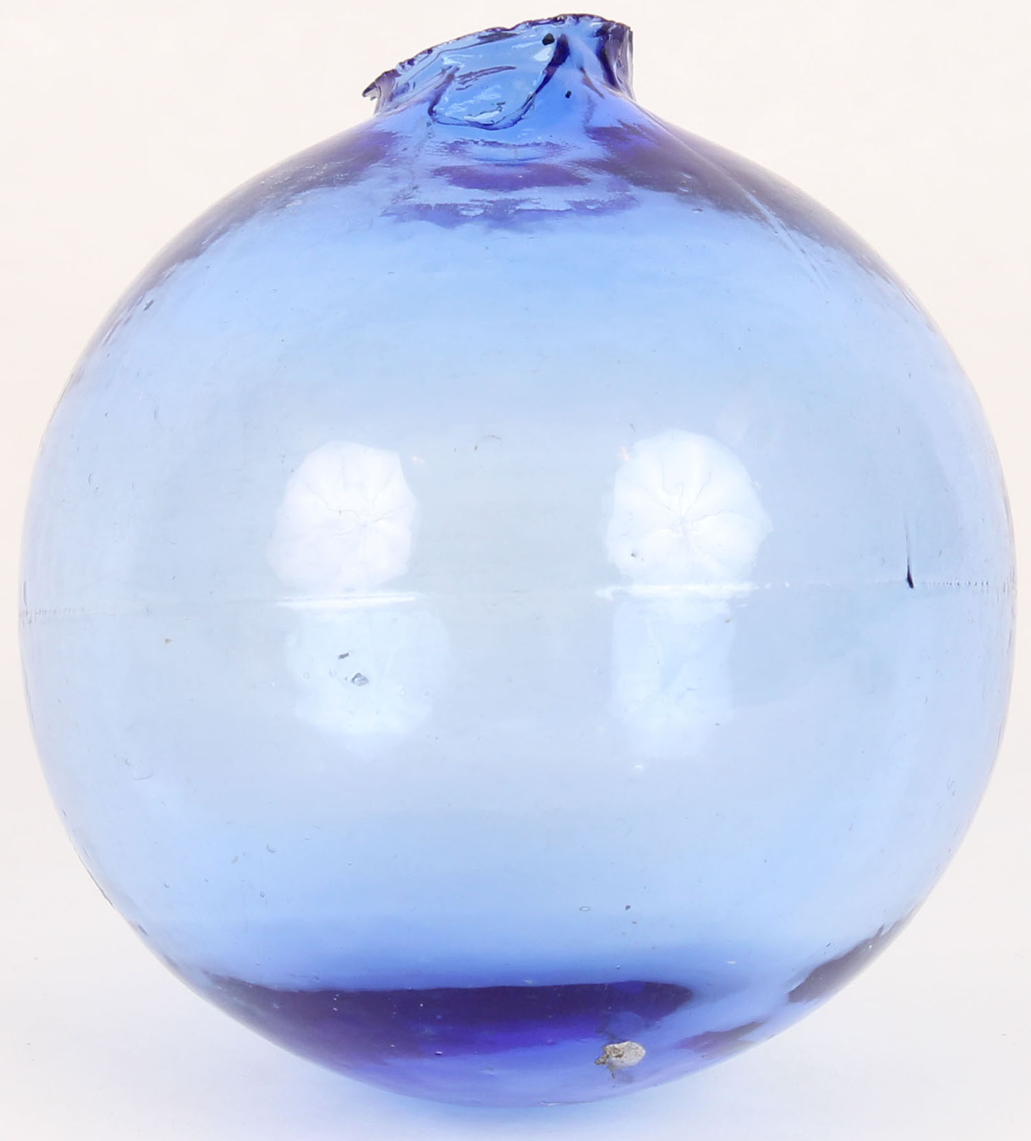 RARE! Light/Medium blue Glass Target Ball, 5 piece mold, 2 5/8'' dia., low neck, circa 1880-1900. Grade: Excellent ++ - Value: 200 to 600