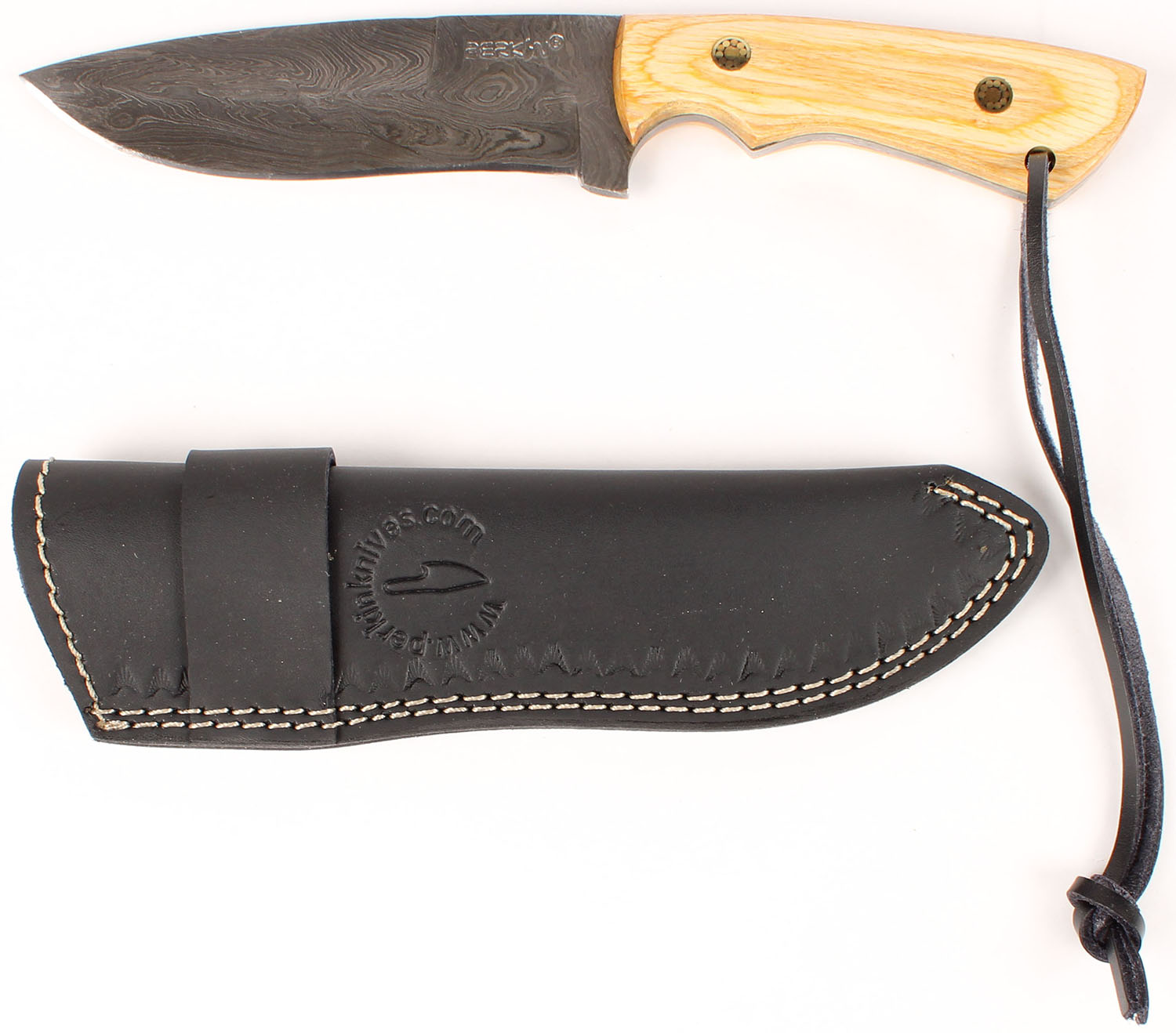 Perkin fixed blade knife, with sheath and orginal box, all bright and clean. Grade: Excellent ++ - Value: 20 to 80