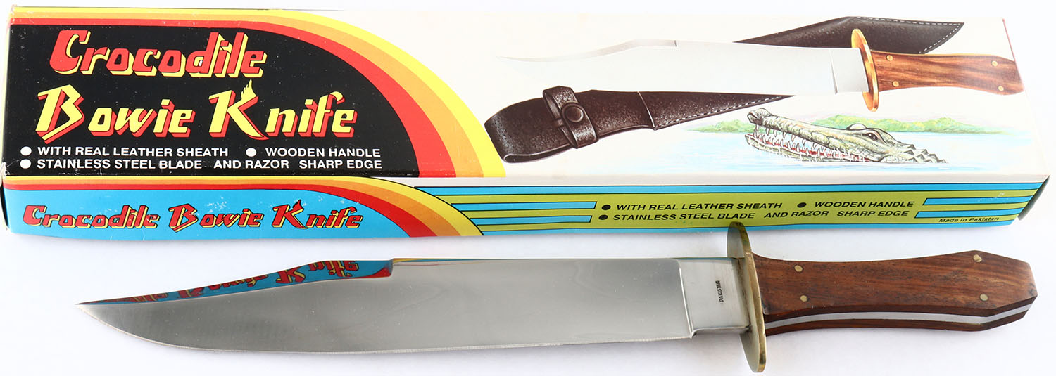Very Large Crocodile Bowie knife, wood handle, all bright and clean, 10 1/2'' blade. Grade: Excellent ++ - Value: 50 to 250