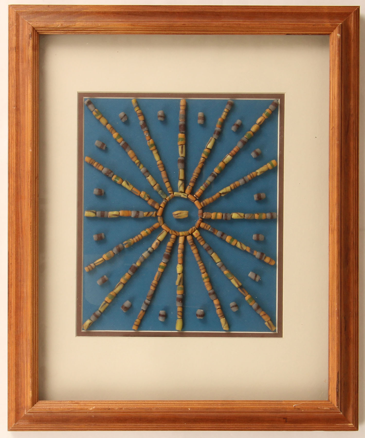 Large set of Native American trade beads in a display, all nice and clean. Frame: 24'' x 20'' Grade: Excellent + - Value: 100 to 500