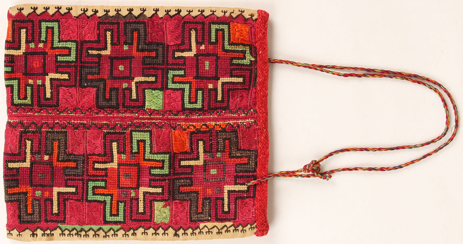 Antique purse, Mola style design, 8 1/2'' x 7 1/2'', very solid. Grade: Excellent ++ - Value: 20 to 200