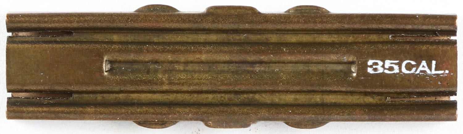 RARE! Stripper Clip for Rem Mod. 8/ Rem. Mod. 30 Bolt action, Metal, .35 Rem., well marked .Grade: Excellent - Value: 50 to 100