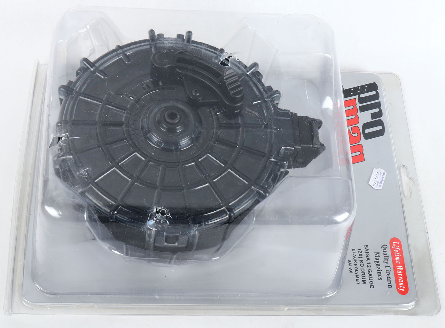 Pro Mag, Saiga 12 ga 20 rd drum mag, in orginal packaging. Grade: Excellent ++ - Value: 40 to 80